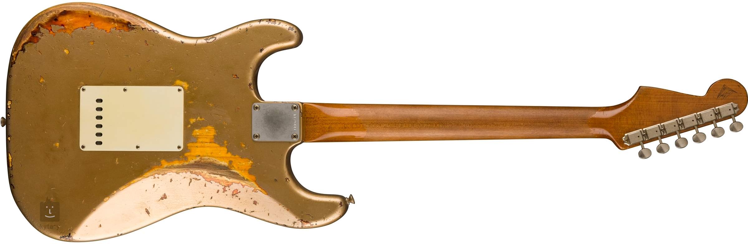CUSTOM '62 STRAT - HEAVY RELIC, MASTERBUILT BY LEVI PERRY, AGED SHORELINE GOLD OVER 3-COLOR SUNBURST je majstrovsky zostavený nástroj z Fender Custom Shopu, ktorý pre vás vyrobil majster gitarista Levi Perry. Je to Fender Stratocaster s povrchovou úpravou Heavy Relic s výraznými prvkami falošnej patiny v podobe "poškriabaného laku", vyblednutého hardvéru a ďalších bojových jaziev, ktoré presvedčivo evokujú desaťročia intenzívneho hrania a koncertovania, hoci ide o úplne nový, nie butikový/bazárový nástroj. Dokonalú ilúziu veku gitary zvýrazňuje povrchová úprava Shoreline Gold over 3-Color Sunburst.