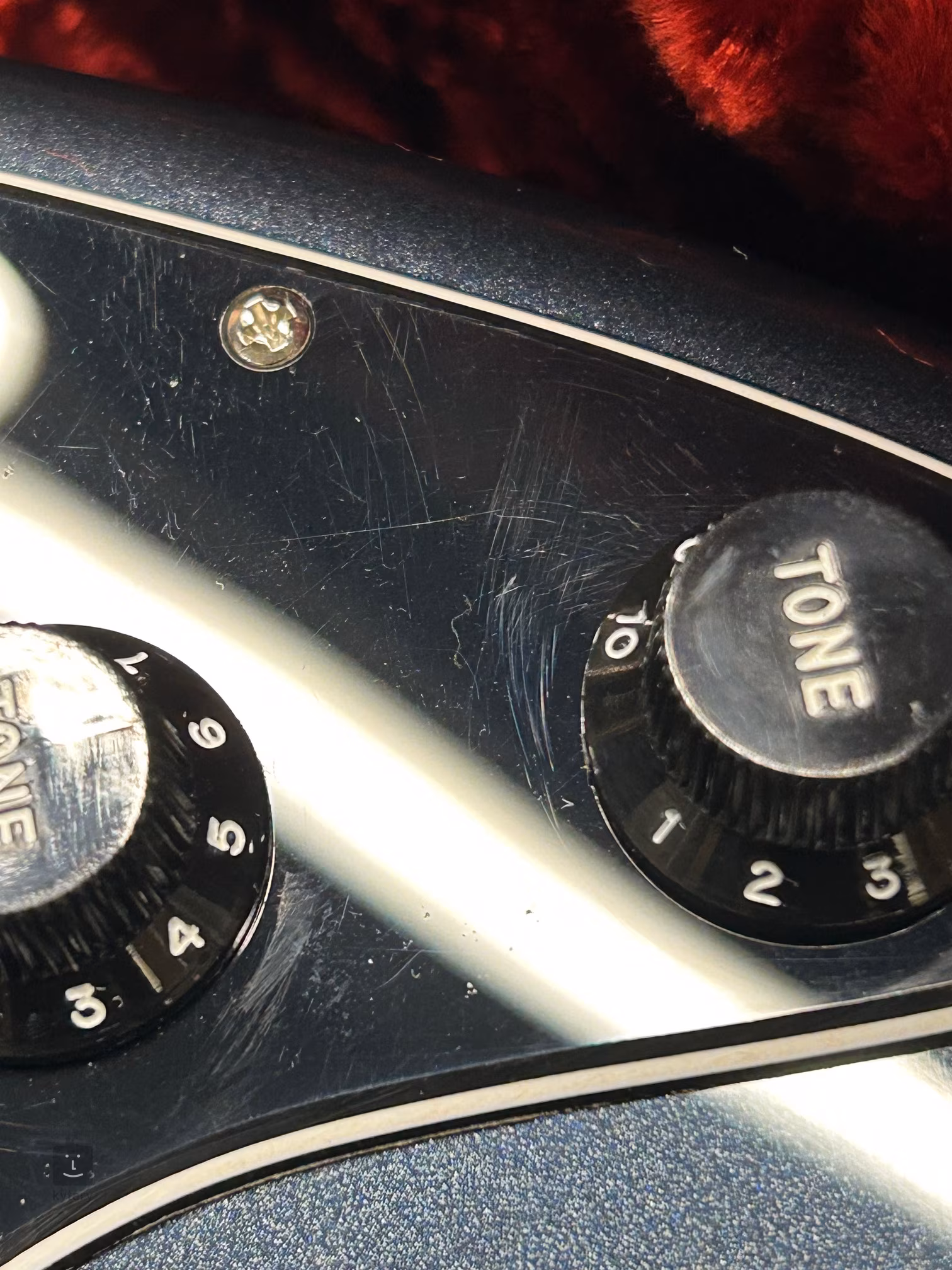 Produkt vykazuje drobné známky používania v dôsledku testovania alebo krátkodobého vystavenia v obchode. Pickguard je poškriabaný od hrania s trsátkom.