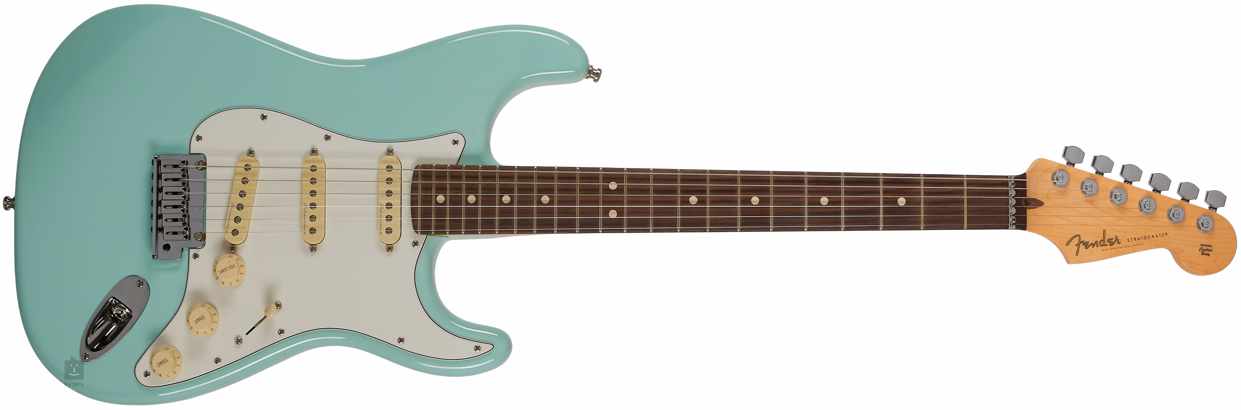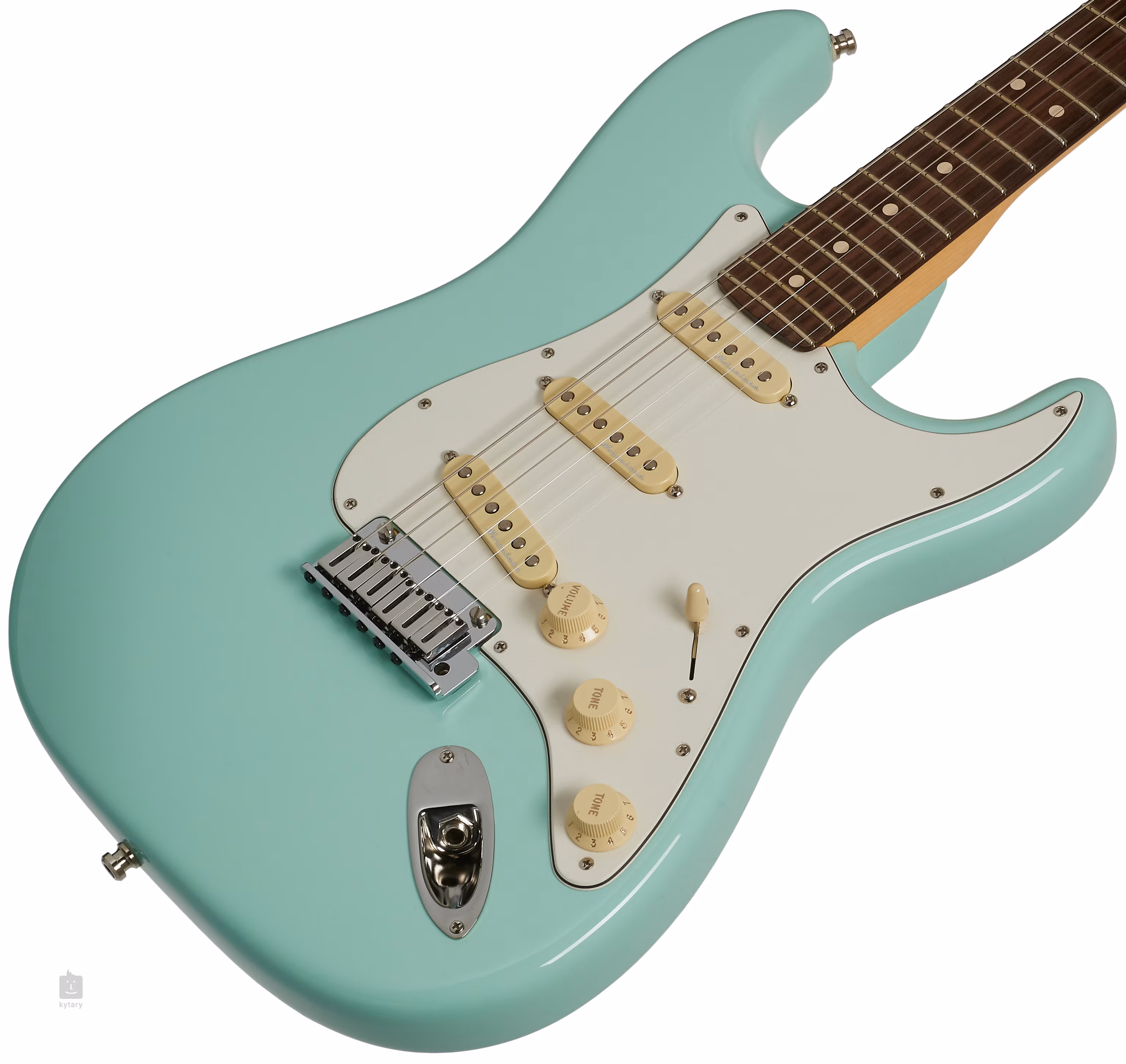 Jeff Beck Signature Stratocaster NOS Surf Green je signature model slavného anglického kytaristy, který ovlivnil několik generací muzikantů. Olšové tělo kytary zdobí povrchová úprava NOS (New Old Stock), což je zcela autentický finiš originálů z 50. a 60. let bez prvků umělé patiny a projevů stárnutí v podobě vybledlého laku. K užšímu javorovému krku s pohodlným Thin “C” profilem je přilepen palisandrový hmatník osazený dvaadvaceti pražci velikosti Medium Jumbo. Tvarovaná patka krku usnadňuje dohmat na vyšších polohách hmatníku.