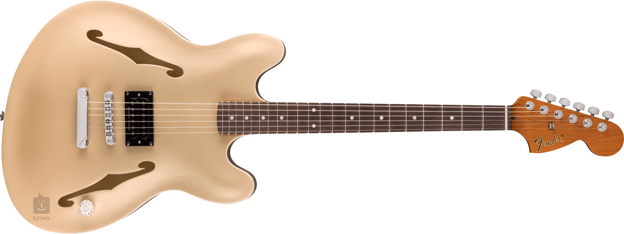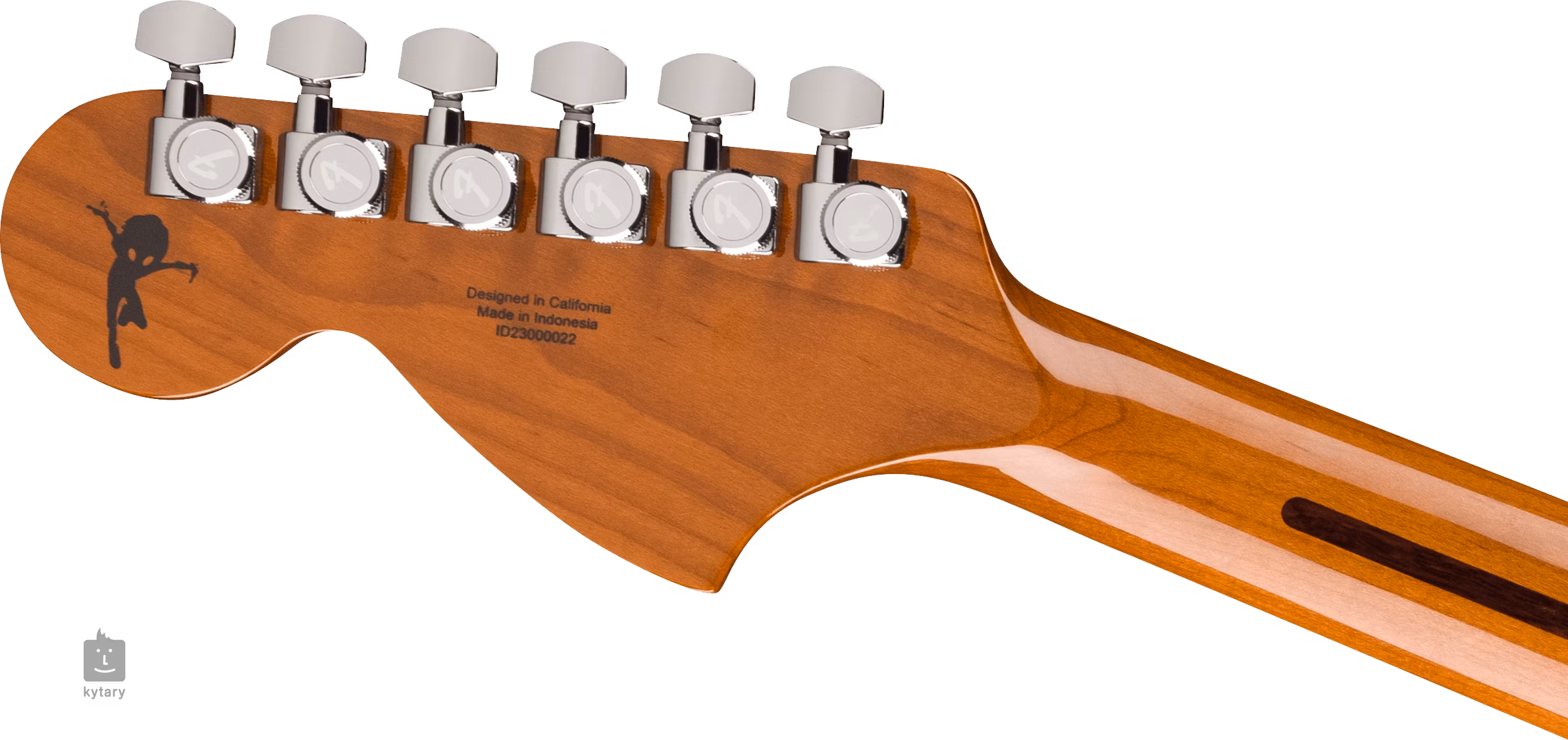 Struny sú uchytené vo firemných uzamykateľných ladiacich mechanikách a cez plne nastaviteľnú šesťsedlovú kobylku v strunníku. Štýlovosť nástroja podčiarkuje grafika s podpisom umelca na zadnej strane hlavice a vlastná doska na krku.
