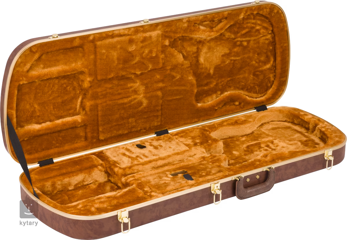 Puzdro Eyeglass Jazzmaster/Jaguar od spoločnosti Fender je modernou interpretáciou ikonického puzdra Eyeglass, inšpirovanou puzdrami Jazzmaster a Jaguar z polovice 60. rokov. Pýši sa vojenskou škrupinou z ABS vytvarovanou podľa noriem ATA s potlačou imitácie hovädzej kože a povrchovou úpravou s textúrou kože. Vnútorná ochranná pena EPS je prispôsobená presnému tvaru gitár, s rozšírenou ochrannou opierkou krku. Mäkký, drvený akrylový interiér v spálenej oranžovej farbe dodáva kufru luxusný vzhľad, zatiaľ čo vnútorný štítok inšpirovaný vintage štýlom pripomína jeho historické dedičstvo. Kufrík má aj dve vnútorné priehradky na príslušenstvo s vekom, rukoväť s oceľovým jadrom obalenú hnedým vinylom a zlaté oceľové západky, z ktorých jedna je uzamykateľná kľúčom. Tento kufor je ideálny pre modely Jazzmaster a Jaguar.