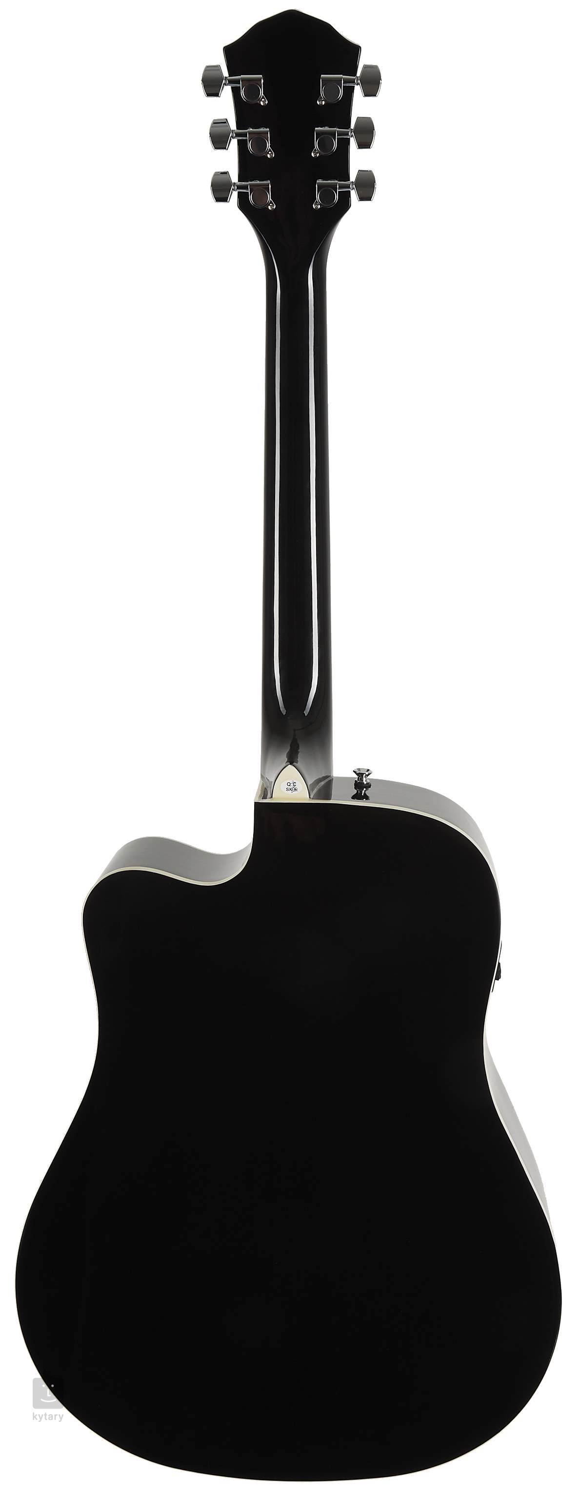 Vrstvené telo nástroja sa skladá zo smrekovcovej prednej dosky a zadnej dosky a bokov z laminovaného lipového dreva. K krku z lipového dreva je prilepený orechový hmatník osadený dvadsiatimi pražcami. Orientáciu na jeho ploche uľahčujú biele polohové bodky. Struny sú upevnené vo firmových Die-Cast mechanikách a orechovom kobylku. Strohý dizajn oživuje čierna lemovka, rozeta zložená z čierno-bielych prstencov a praktický čierny pickguard.