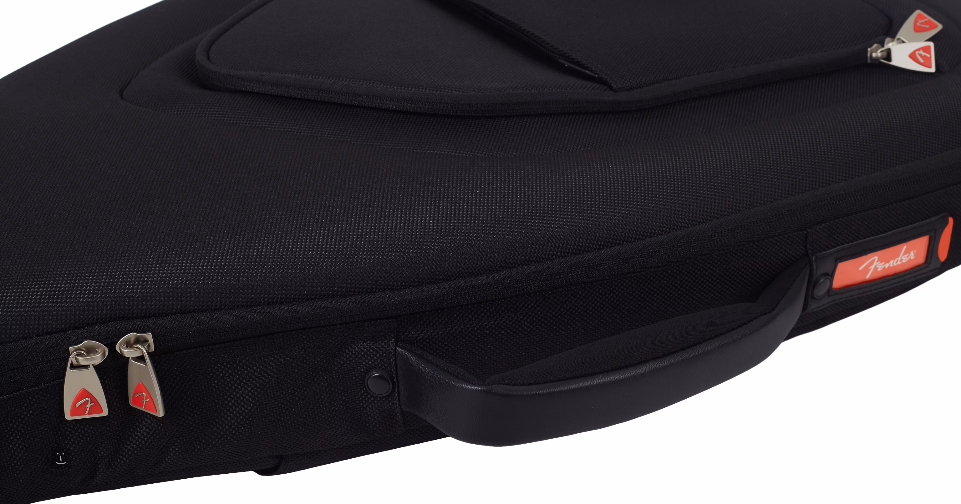 Puzdro na elektrickú gitaru zo série FE1225 je štýlovou a cenovo dostupnou možnosťou ochrany vášho cenného hudobného nástroja pri bežnej manipulácii a cestovaní. Vonkajší plášť je vyrobený z odolného polyesteru. Miesta, kde dochádza k najčastejším nárazom počas sťahovania, cestovania v kufri auta/dodávky a pod. sú vybavené gumovými "nárazníkmi". Pohodlie a bezpečnosť gitary zaručuje luxusné 25 mm hrubé polstrovanie a systém, ktorý spoľahlivo chráni valce a zámky nástroja z vnútornej/vonkajšej strany, ktoré sú veľmi náchylné na poškodenie. Manipuláciu s puzdrom umožňujú ergonomické ramenné popruhy alebo bohato polstrovaná rukoväť. Všetko potrebné príslušenstvo možno uložiť do priestranného vrecka na prednej strane obalu, v ktorom sa nachádzajú ďalšie dve vnútorné vrecká a úchyty na drobné príslušenstvo, t. j. trsátka, korálky, struny atď.