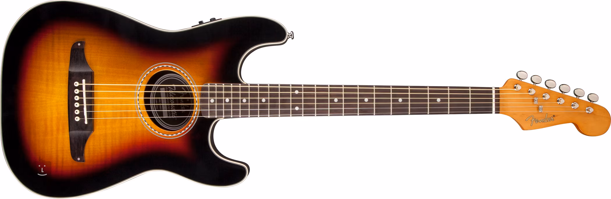 Kytary Fender Stratacoustic spadají do série Electracoustic. V ní naleznete nástroje, které tvarem těla vychází z klasických designů elektrických kytar Fender, jako třeba Strat a nebo Tele. Jde ale o kytary elektroakustické a mající teda zcela unikátní zvukové vlastnosti. Jde o ideální nástroje zejména při hraní přes aparát.