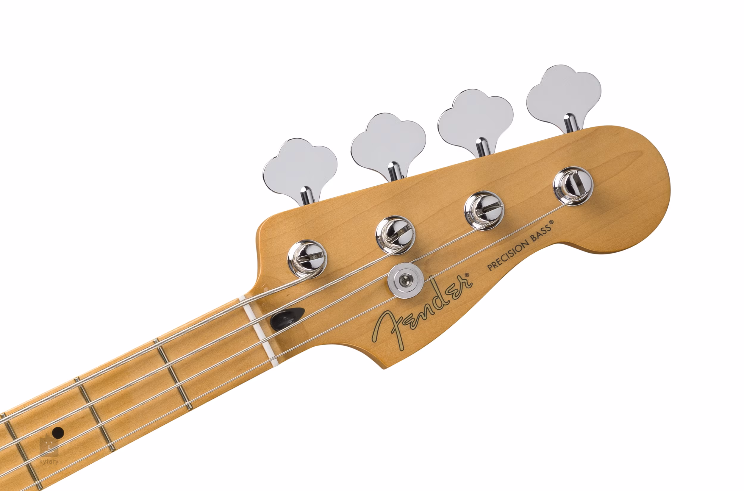 Olšové telo basgitary je vybavené povrchovou úpravou Ocean Turquoise a lesklým polyesterovým lakom. Javorový krk ponúka pohodlný a rýchly profil Modern "C" a hmatník je osadený dvadsiatimi Medium Jumbo pražcami. Basgitara je osadená snímačom Player Series Alnico V Split-Coil. Charakter zvuku upravíte pomocou štandardných ovládačov hlasitosti a tónovej clony. Struny sú osadené firemnými otvorenými ladiacimi mechanikami a štvorsedlovou kobylkou. Štýlovú povrchovú úpravu podčiarkuje pickguard s imitáciou korytnačky.