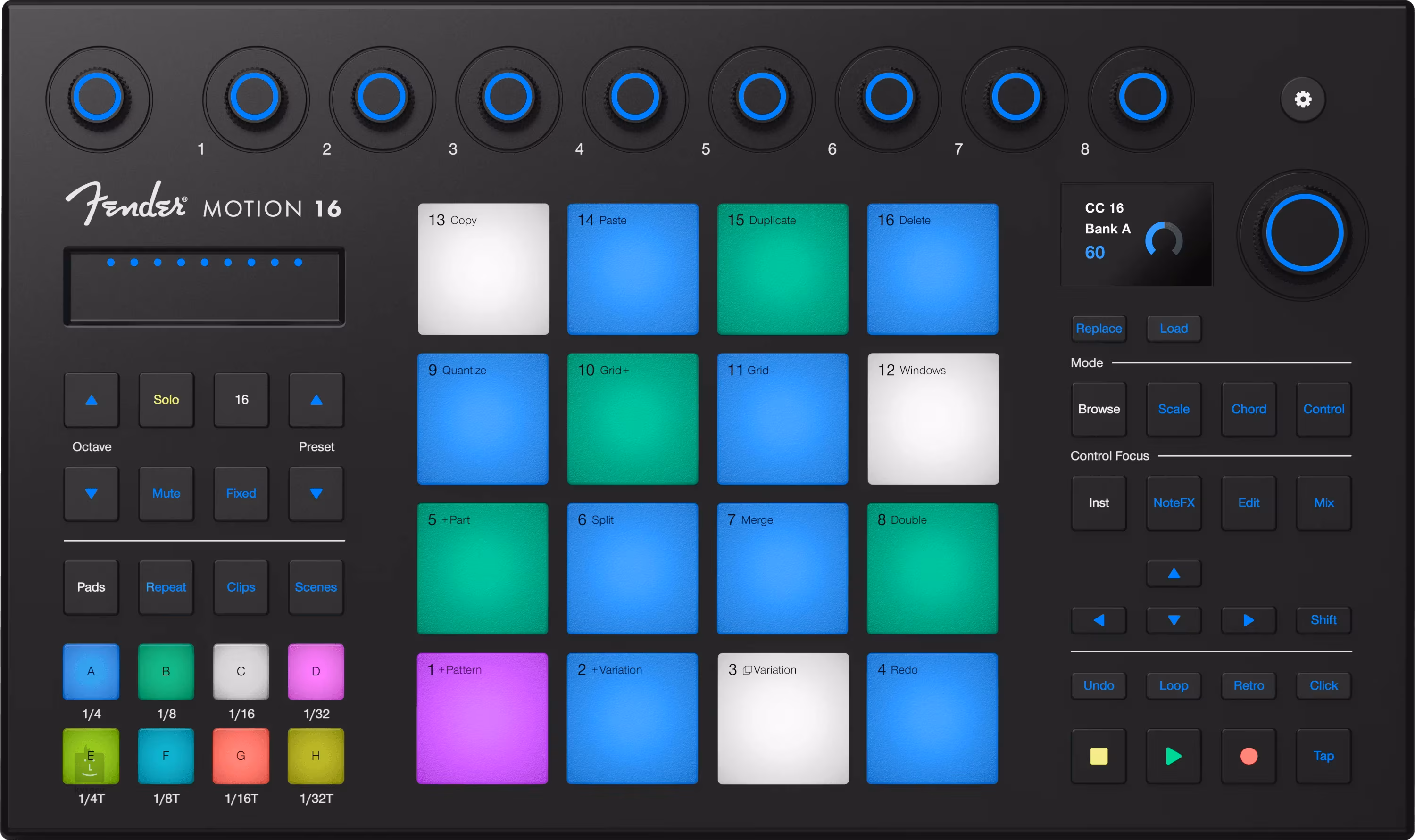 Fender prináša s modelom Motion 16 nástroj, ktorý spája pocit z hudobného nástroja s flexibilitou modernej produkcie – ideálne riešenie pre všetkých, ktorí chcú zostať plne ponorení do tvorivého procesu a tvoriť hudbu rýchlo, intuitívne a bez obmedzení.