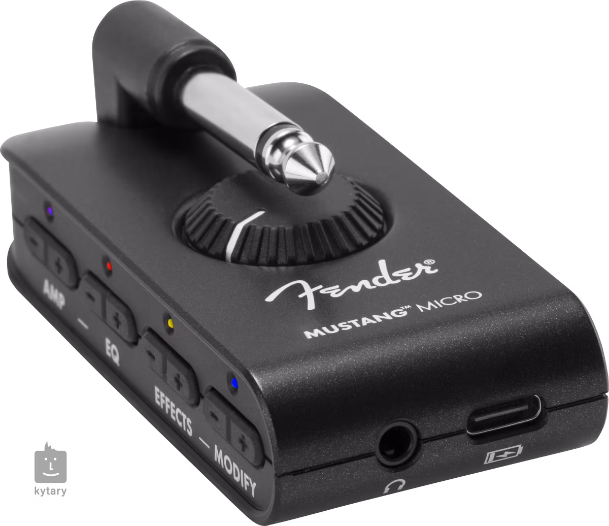 Slúchadlový zosilňovač Fender Mustang Micro prináša zvuky efektov a nástrojov série Mustang Amplifier priamo do vašich uší. Jednoducho ho zapojte do jack vstupu vašej gitary, pripojte slúchadlá (TRS 3,5 mm jack) a začnite hrať. Jeho srdcom je pokročilý digitálny signálový procesor (DSP), ktorý pre vás vytvorí vernú simuláciu dvanástich nástrojov a dvanástich efektov, pričom vám umožní nastaviť ich parametre, upraviť ekvalizáciu a nastaviť hlasitosť. Mustang Micro zároveň nie je určený len na domáce cvičenie - môžete ho pripojiť k prenosnému reproduktoru alebo smartfónu cez Bluetooth a jamovať s priateľmi.