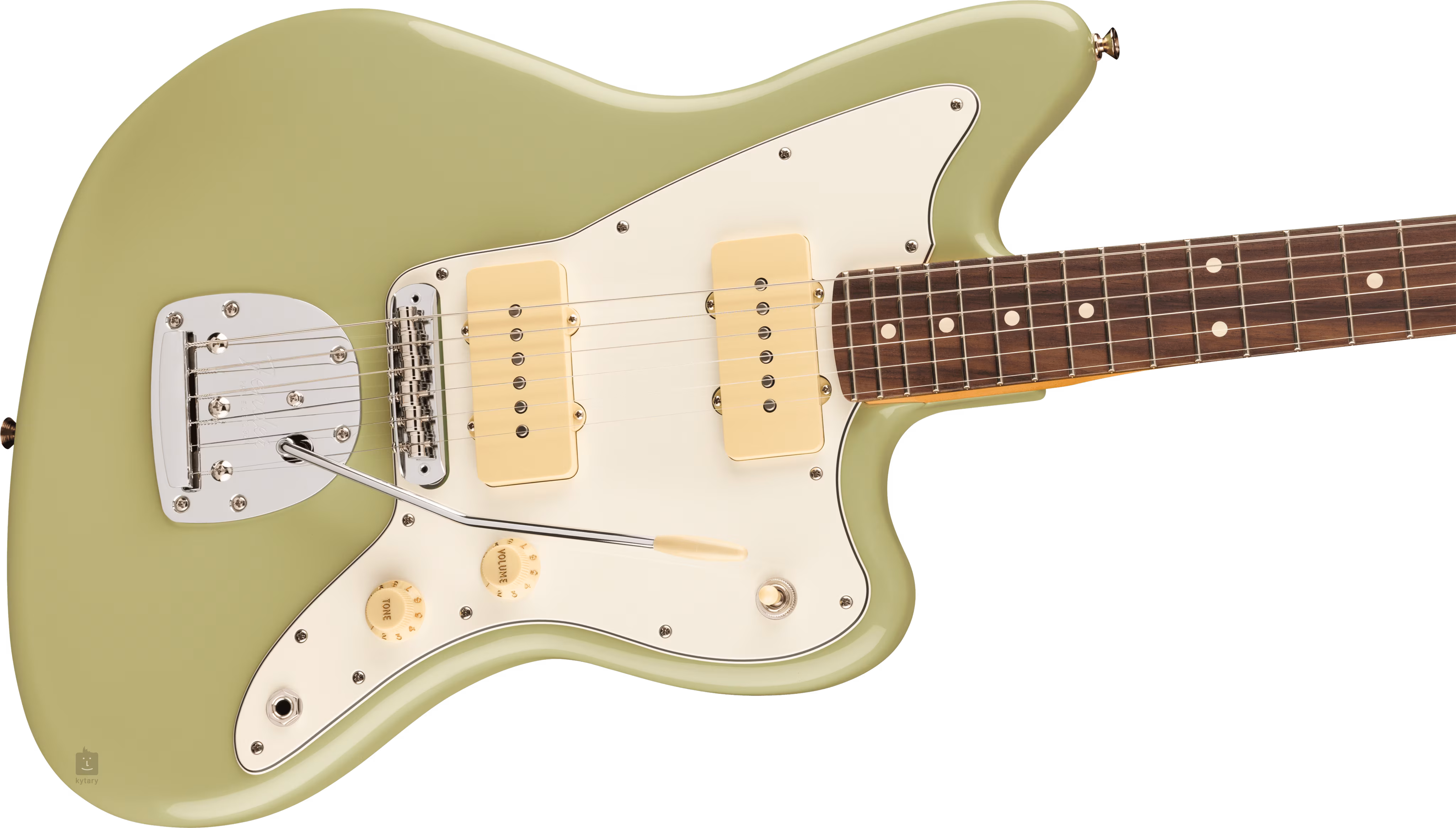 Slovo "Jazzmaster" v názve modelu Player II Jazzmaster RW BCG jasne naznačuje pôvodný zámer, ale tento hudobný nástroj s typickým ofsetovým tvarom tela sa nespája s jazzom - popularitu si získal medzi hudobníkmi z alternatívnej hudobnej scény (od surf rocku po indie rock). Olšové telo gitary je pokryté lesklým polyesterovým lakom. Javorový krk s profilom "Modern C" a saténovou povrchovou úpravou je prilepený k palisandrovému hmatníku so zaoblenými hranami a dvadsiatimi dvoma Medium Jumbo pražcami.