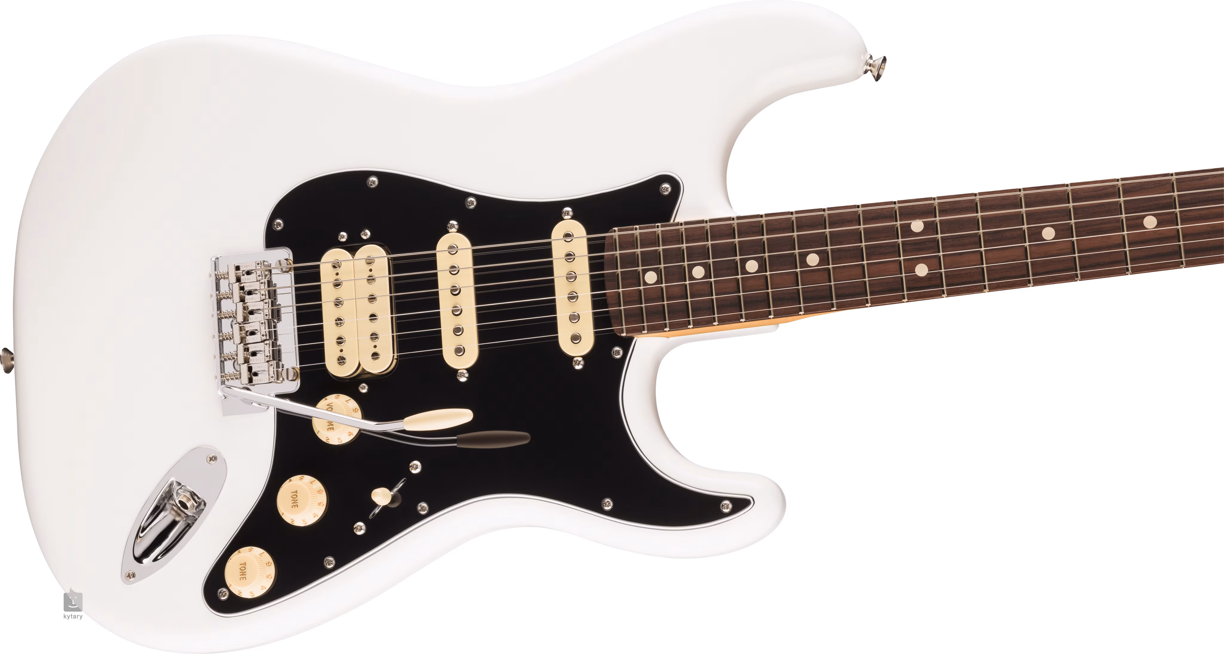 Humbucker zo série Player s magnetmi Alnico 2 a dva single-coil snímače s magnetmi Alnico 5 dodávajú gitare modernejší pocit a zvuk značky Fender, ktorý oceníte v širokom spektre hudobných štýlov. Charakter zvuku je možné upravovať pomocou ovládačov hlasitosti a tónovej clony a päťpolohového prepínača snímačov. Struny sú osadené mechanikou ClassicGear s prevodovým pomerom 18:1 a synchronizovaným "dvojbodovým" tremolom s oceľovými sedlami. Štýlový vzhľad gitary podčiarkuje čierny 3-vrstvový pickguard a povrchová úprava Polar White.