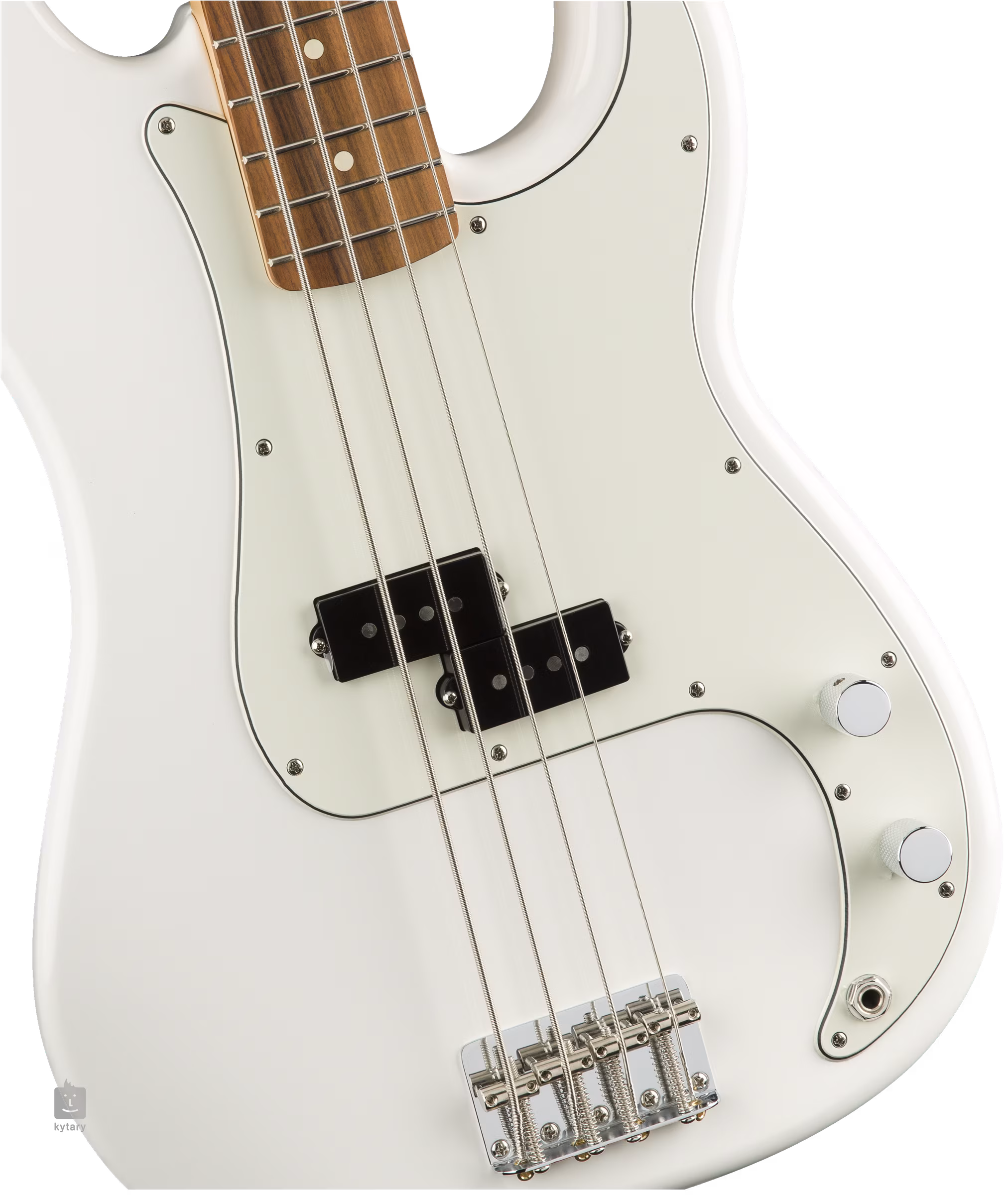 Snímač Alnico split-coil si dobre rozumie aj s materiálmi tela a krku a prináša úderný a pevný zvuk v tradícii Precision Bass, ktorý sa nestratí v žiadnej kapele. Jednoduché ovládanie pomocou potenciometrov hlasitosti a tónovej clony umožňuje doladiť zvuk podľa vašich predstáv. Hardvér je tiež typicky kvalitný pre Fender, s otvorenou mechanikou, hmatníkom zo syntetickej kosti a hlavicou so štyrmi kameňmi, ktoré zabezpečujú stabilné ladenie.
