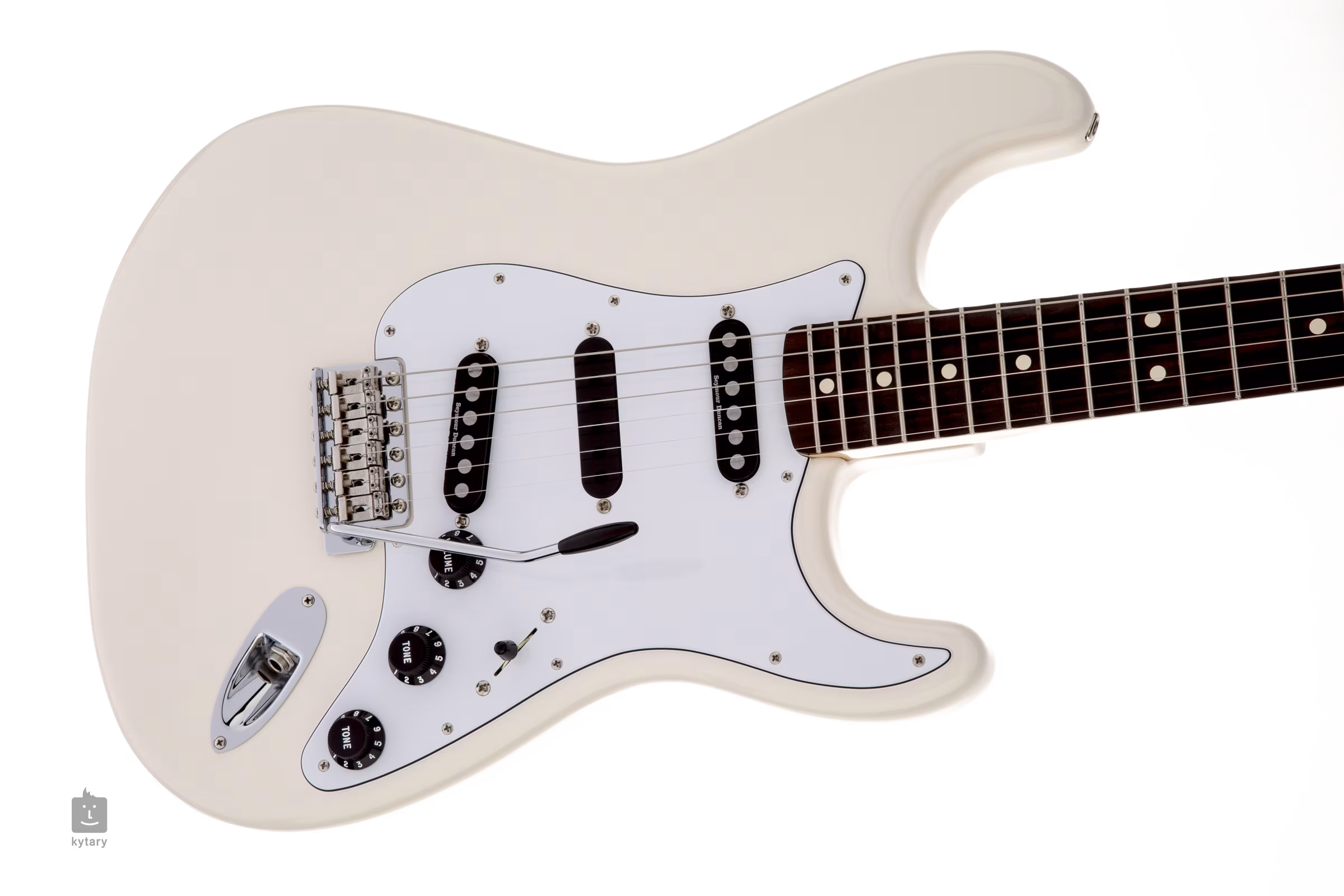 Struny sú uchytené na hmatníku z umelej kosti v uzavretých ladiacich mechanikách (Vintage F Stamped) a tradičnom jednootáčkovom synchronizovanom tremole. Štýlový vzhľad gitary podčiarkuje firemné logo na hlavici, dobovo autentická doska krku s vyrazeným písmenom F zo 70. rokov, ktorú držia tri skrutky, zabudované výstupky pre bezpečnostné zámky popruhu, chrómový hardvér a trojvrstvový pickguard, ktorý zároveň chráni lak pred poškriabaním.