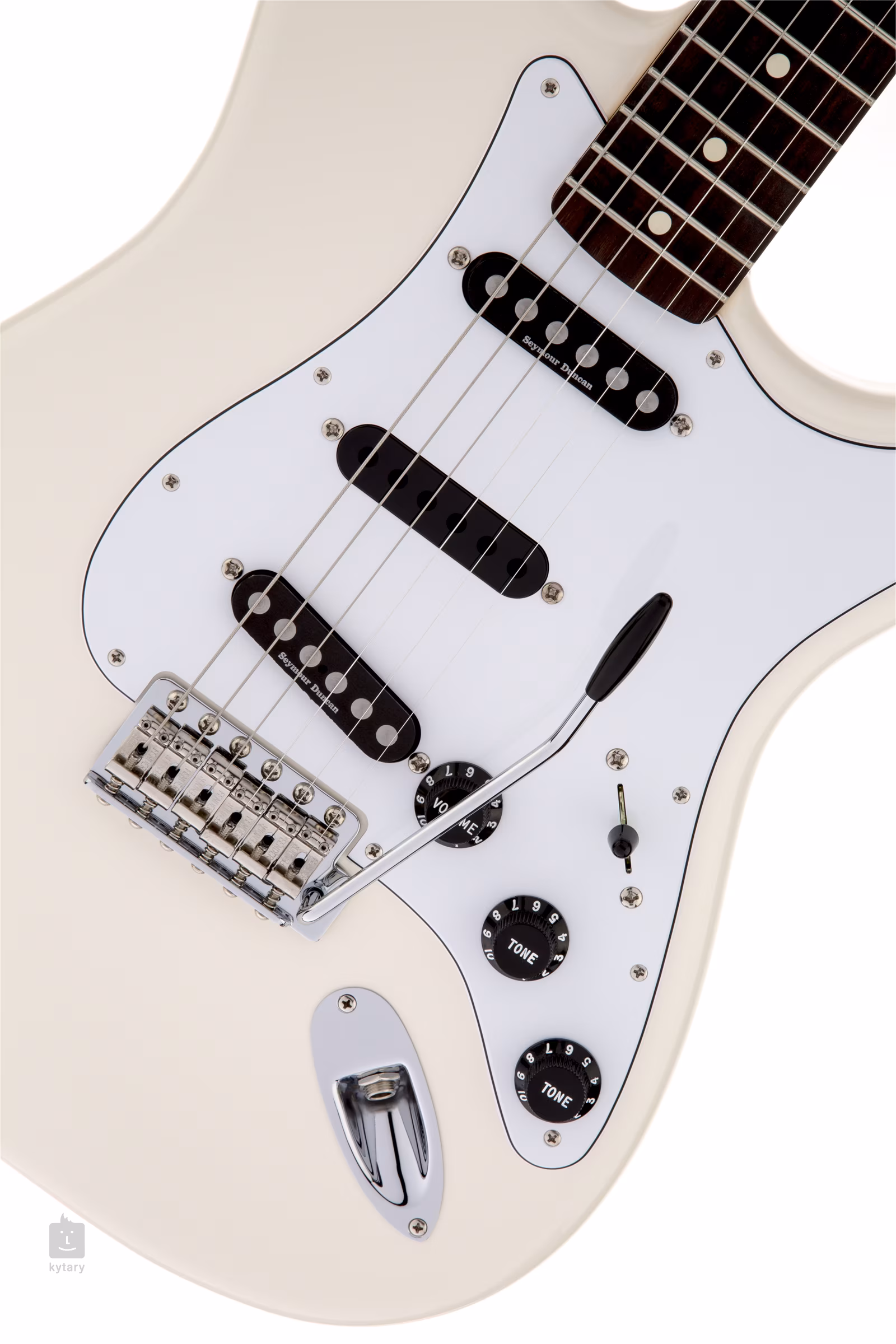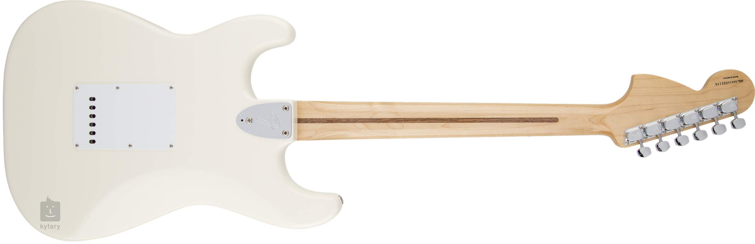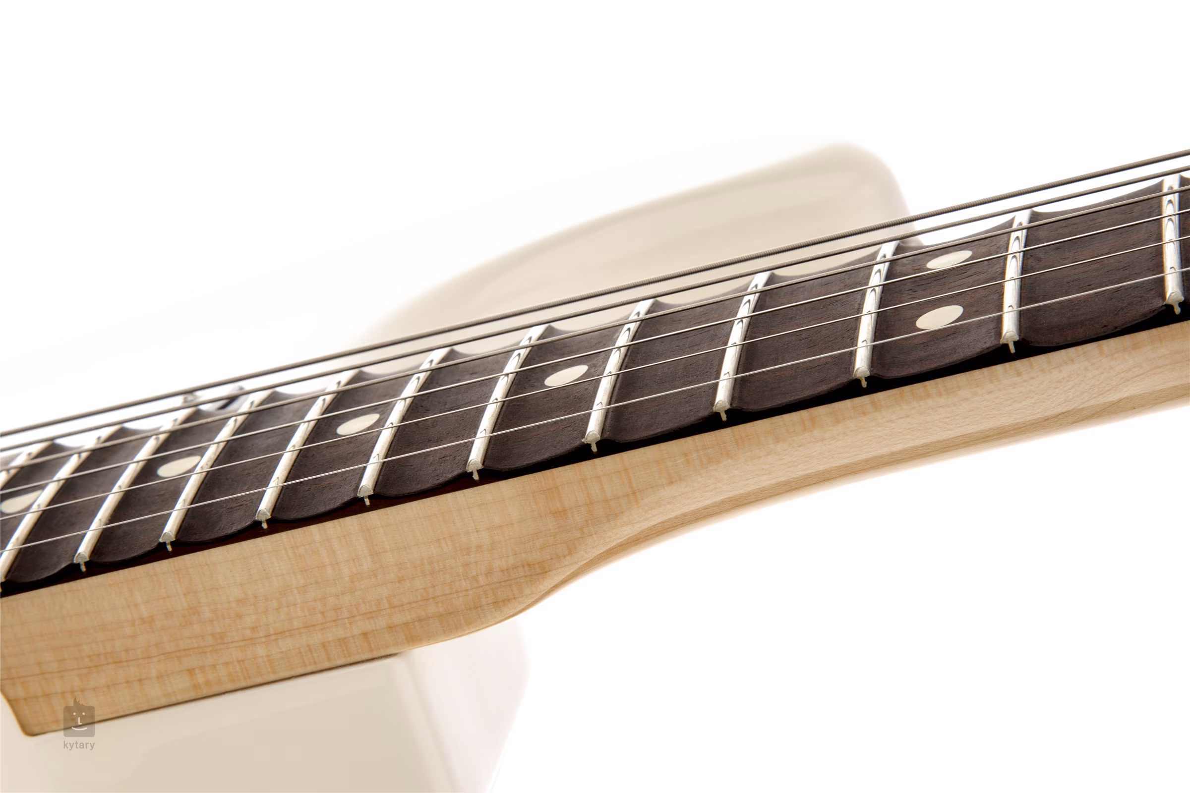 Struny sú uchytené na hmatníku z umelej kosti v uzavretých ladiacich mechanikách (Vintage F Stamped) a tradičnom jednootáčkovom synchronizovanom tremole. Štýlový vzhľad gitary podčiarkuje firemné logo na hlavici, dobovo autentická doska krku s vyrazeným písmenom F zo 70. rokov, ktorú držia tri skrutky, zabudované výstupky pre bezpečnostné zámky popruhu, chrómový hardvér a trojvrstvový pickguard, ktorý zároveň chráni lak pred poškriabaním.