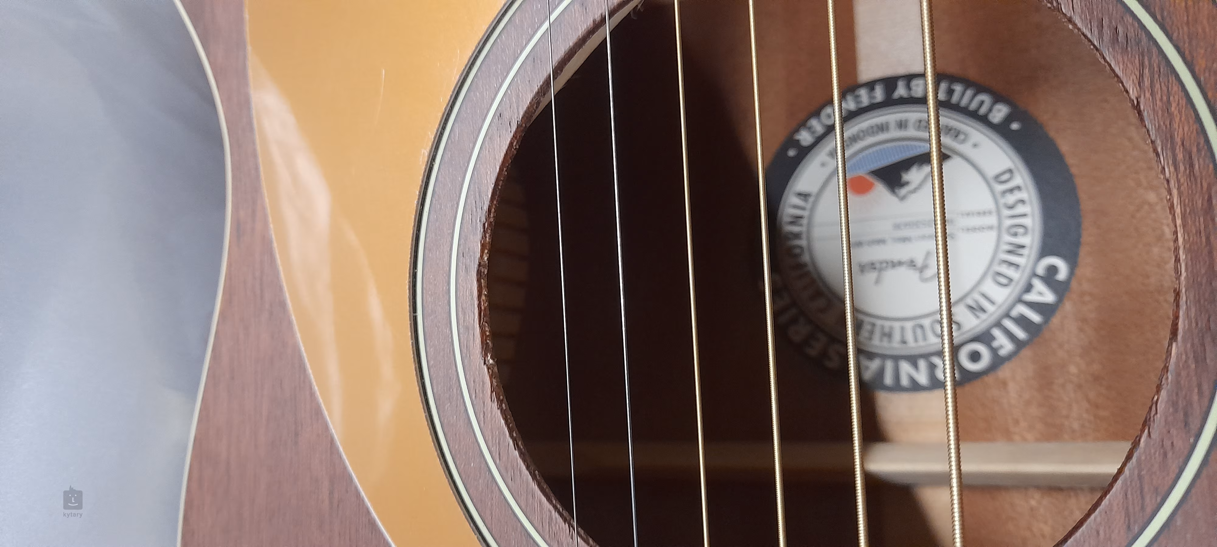 Otvor rezonančnej dosky je poškodený z výroby (pozri foto), inak je v dobrom stave.