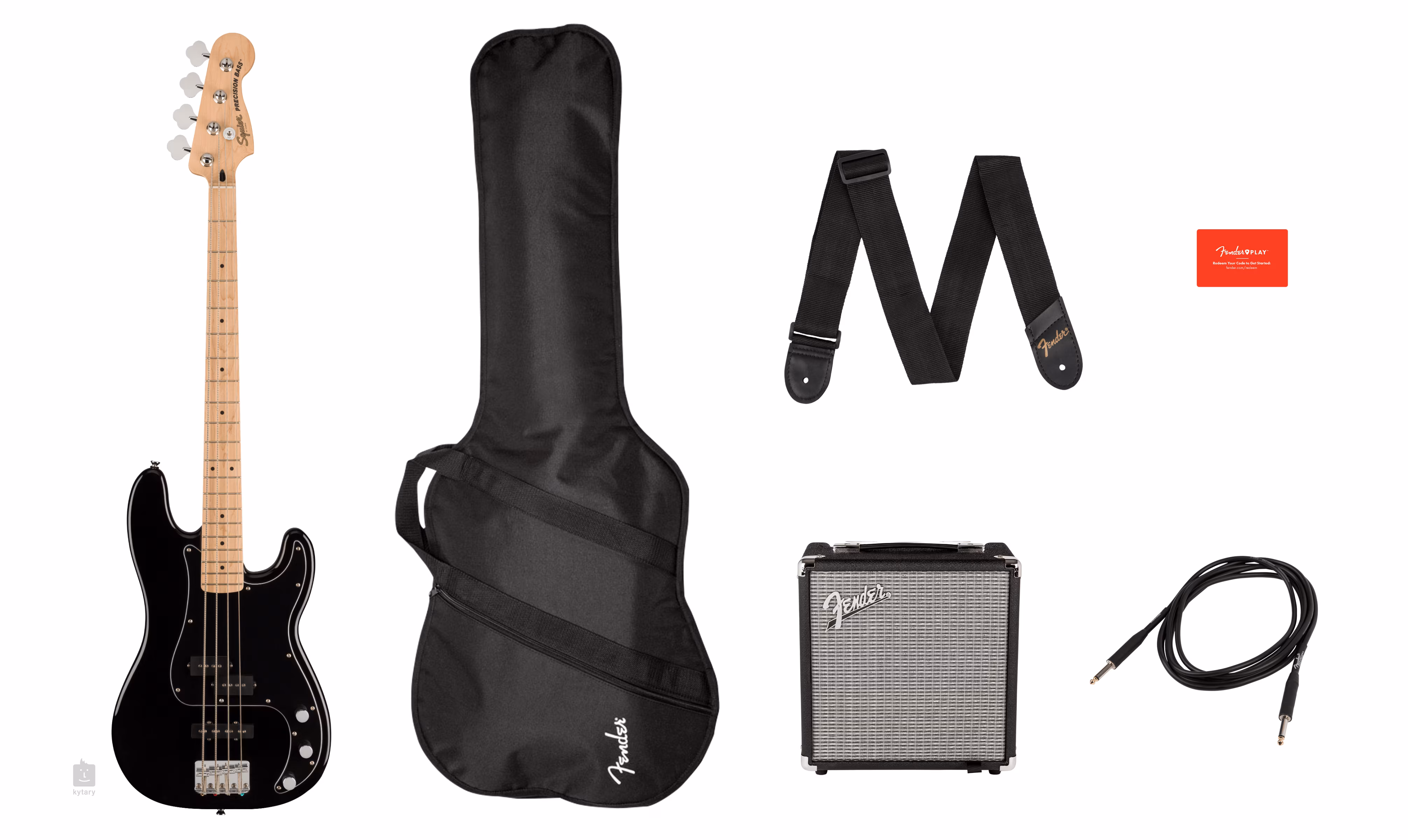 Sada obsahuje basgitaru Squier Affinity Precision Bass, typ basgitary, ktorá sa natrvalo zapísala do modernej hudobnej histórie v rukách hráčov ako Sting a Roger Waters. Do ľahkého tela sú zasadené dva single snímače, každý s vlastným ovládaním hlasitosti a spoločným tónovým štítom. Vďaka nim máte k dispozícii rozsiahle zvukové možnosti, ktoré zvládnu prakticky akýkoľvek hudobný žáner. Krk je potom vybavený obľúbeným profilom C, ktorý je pohodlný, komfortný a rýchly.