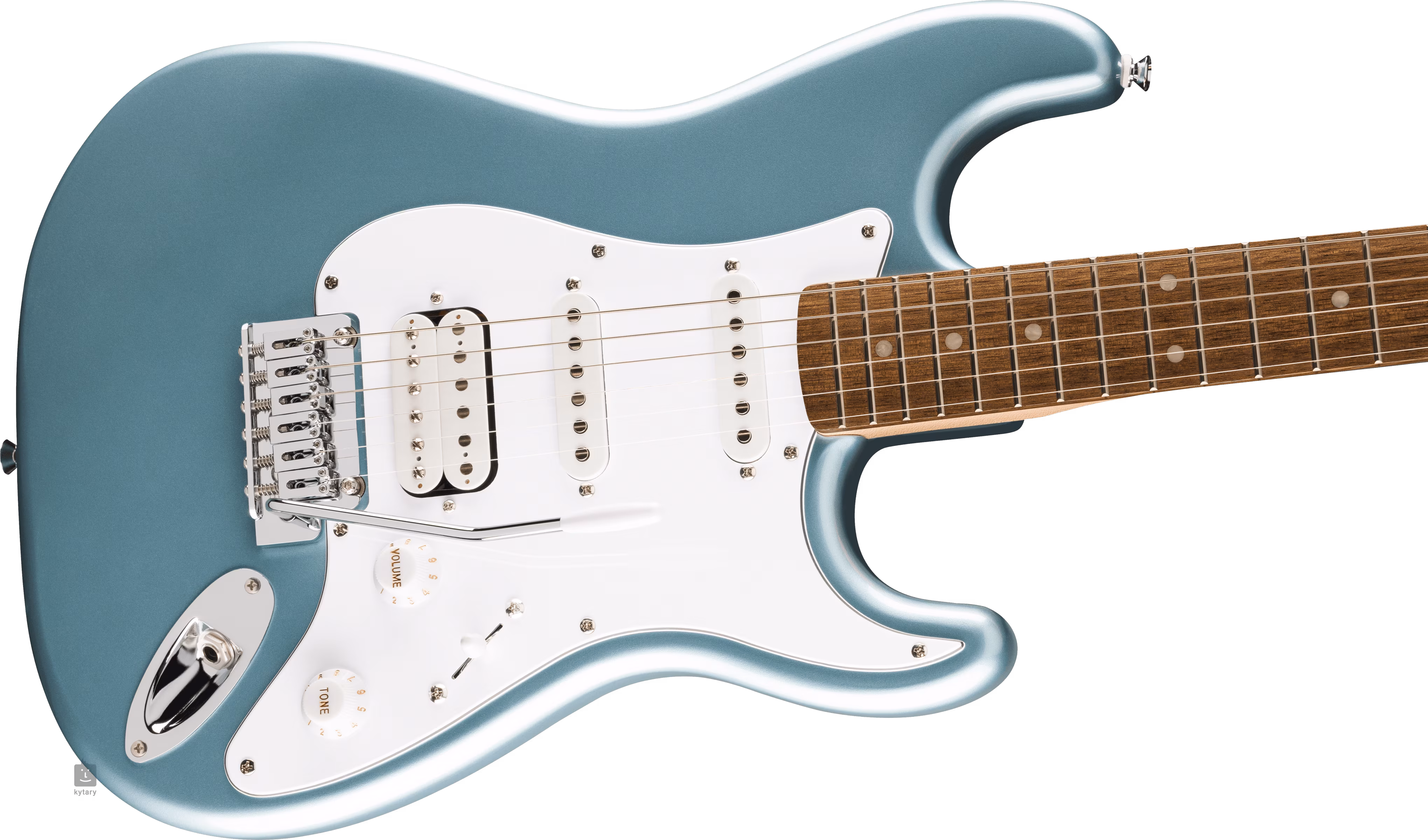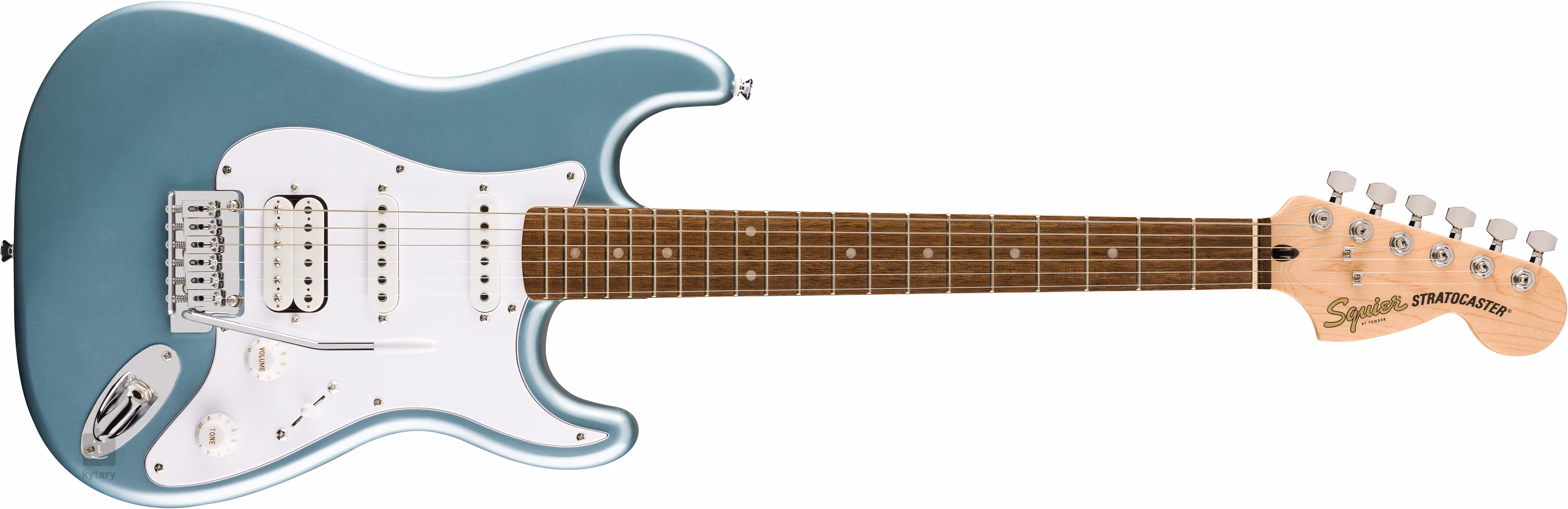 Fender Squier Affinity Series Stratocaster Junior HSS Ice Blue Metallic je Strat s menším telom a kratšou menzúrou (610 mm), ktorý poteší tínedžerov a hráčov, ktorí preferujú gitary s kompaktnejším telom a jednoduchším hmatníkom. Ľahké topoľové telo nástroja je pokryté lesklým polyuretánovým lakom. Skrutkovaný javorový krk s užším "C" profilom je prilepený k figovému hmatníku osadenému 20 Medium Jumbo pražcami. Orientáciu na hmatníku uľahčujú polohové bodky s imitáciou perlete.
