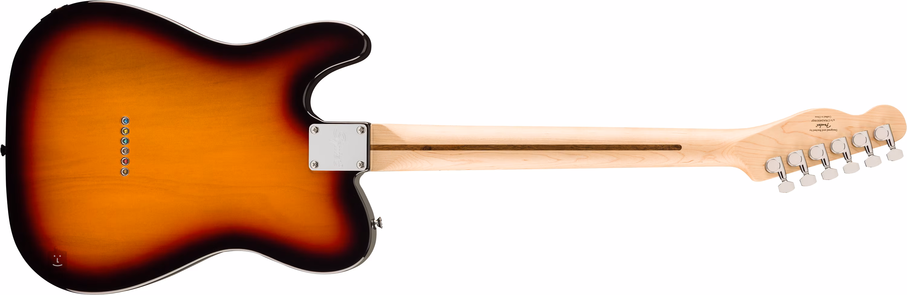Dva vlastné snímače single-coil dodávajú gitare zodpovedajúci "twang" Tele. Charakter zvuku možno formovať pomocou potenciometrov hlasitosti, tónovej clony a trojpolohového prepínača snímačov. Struny sú ukotvené vo firemných chrómových die-cast ladiacich mechanikách a cez Tele mostík s oceľovými sedlami cez telo gitary. Štýlové prevedenie podčiarkuje farebná schéma 3-Color Sunburst a trojvrstvový biely pickguard.
