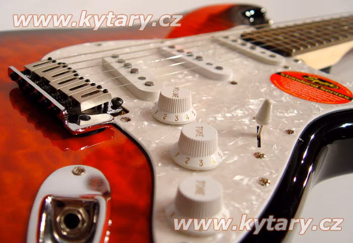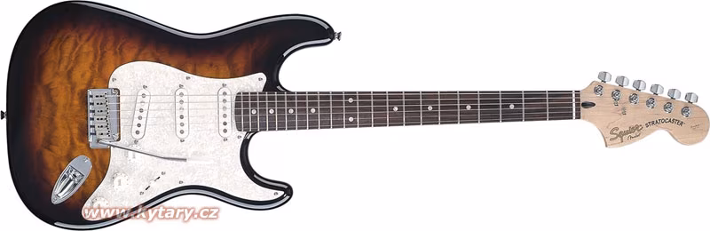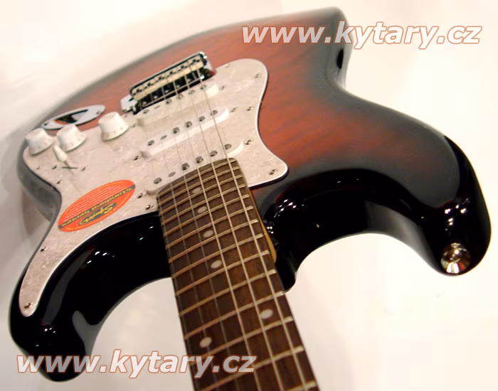 Nejvyšší model od Squier by Fender v překrásném barevném provedení je vyroben z pečlivě vybraného dřeva. Nástroj vychází z nejoblíbenější a nejobdivovanější verze Fender Stratocasteru - z klasického Strata jaký Fender vyráběl v šedesátých letech. Díky kvalitnímu řemeslnému zpracování a citlivému zakomponování moderních prvků není tato kytara žádnou kopiíí. Je to skutečný Stratocaster. Specilální vysokotlaká technologie, použitá při výrobě ladící mechaniky zaručuje dlouhotrvající pěkný vzhled a bezproblémové ladění. Díky moderní dvoupivotové kobylce s protitlumícímy kameny dosáhnete při použití vibrata skutečně pěkného netlumeného tónu. Nástroj má 22 pražcový krk, a oblíbený radius hmatníku 9,5 " pro pohodlné hraní a neutlumený tón při vytahování strun.<br> <br>