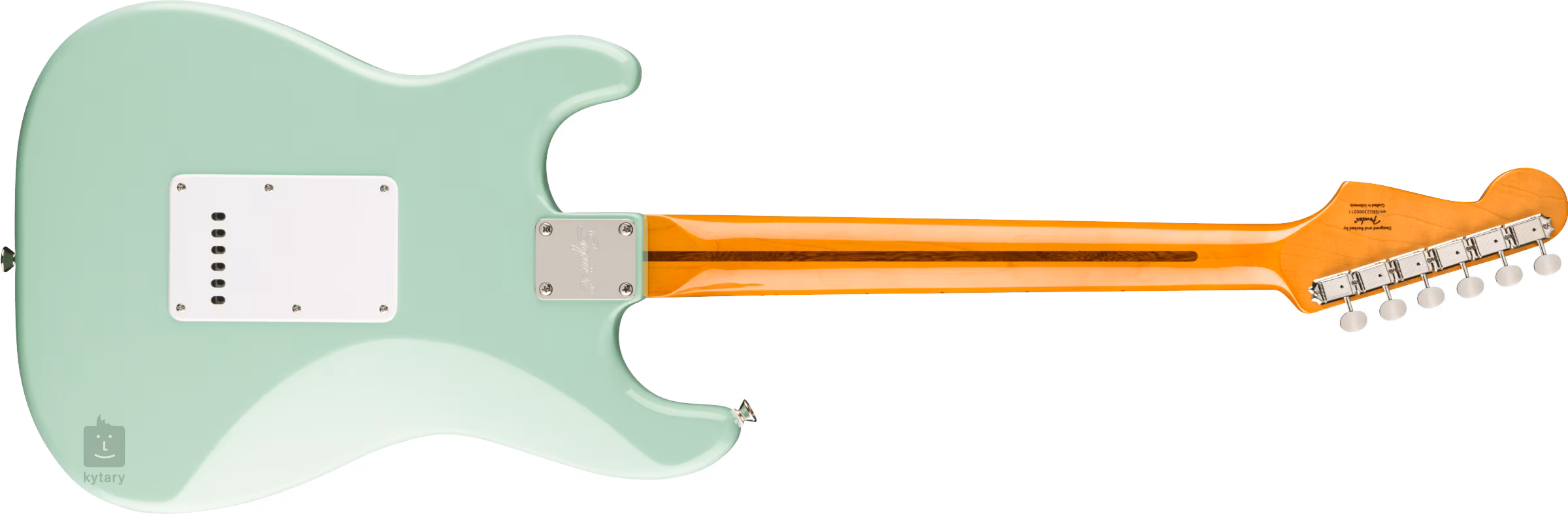 Tri vlastné single-coil snímače s Alnico magnetmi dodávajú gitare zvuk s autentickým charakterom Fender. Na úpravu nastavení slúži potenciometer hlasitosti, dva tónové ovládače a päťpolohový prepínač snímačov. Struny sú osadené firemnou mechanikou vo vintage štýle a tradičným synchronizovaným tremolom. Štýlový vzhľad tohto limitéra podčiarkuje niklový hardvér a biely jednovrstvový pickguard.