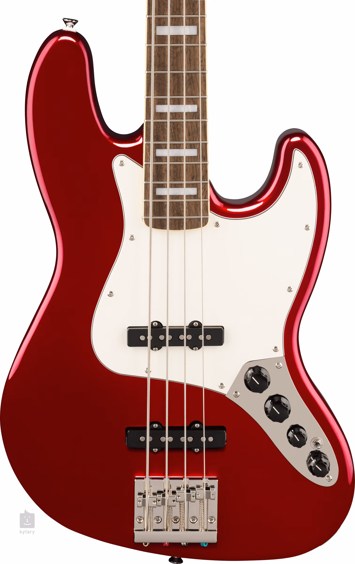 Telo basgitary z topoľa je pokryté lesklým polyuretánovým lakom v farbe Candy Apple Red. Javorový krk s pohodlným profilom „C“ je vybavený hmatníkom z figového dreva s dvadsiatimi úzkymi vysokými pražcami. Polohovacie bloky z imitácie perlete uľahčujú orientáciu na hmatníku.
