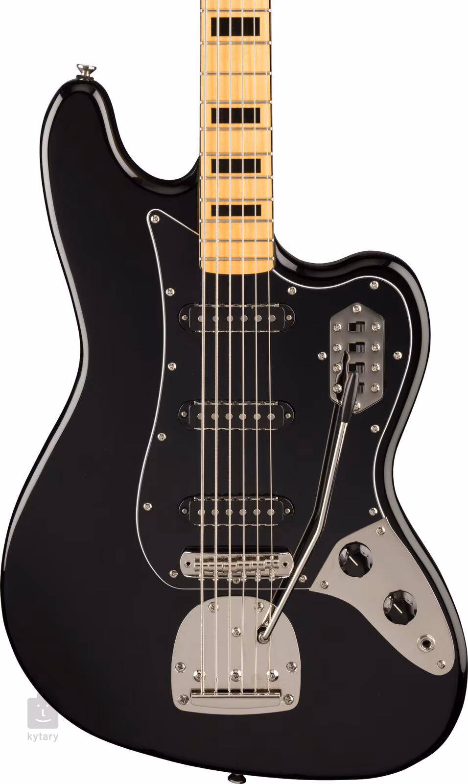 Telo limitovanej edície Fender Squier FSR Classic Vibe Bass VI Black je vyrobené z topoľa. Užší krk s pohodlným "C" profilom a hmatník sú vyrobené z javora. Plochu hmatníka rozdeľuje dvadsaťjeden pražcov Narrow Tall a čierne polohové bloky.