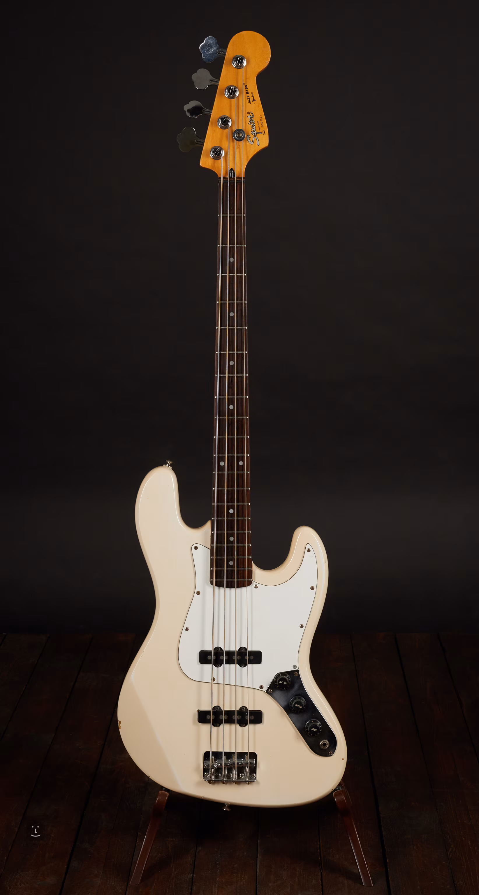 Squier by Fender Jazz Bass vyrobený okolo roku 1990 v kórejskej továrni Samick.