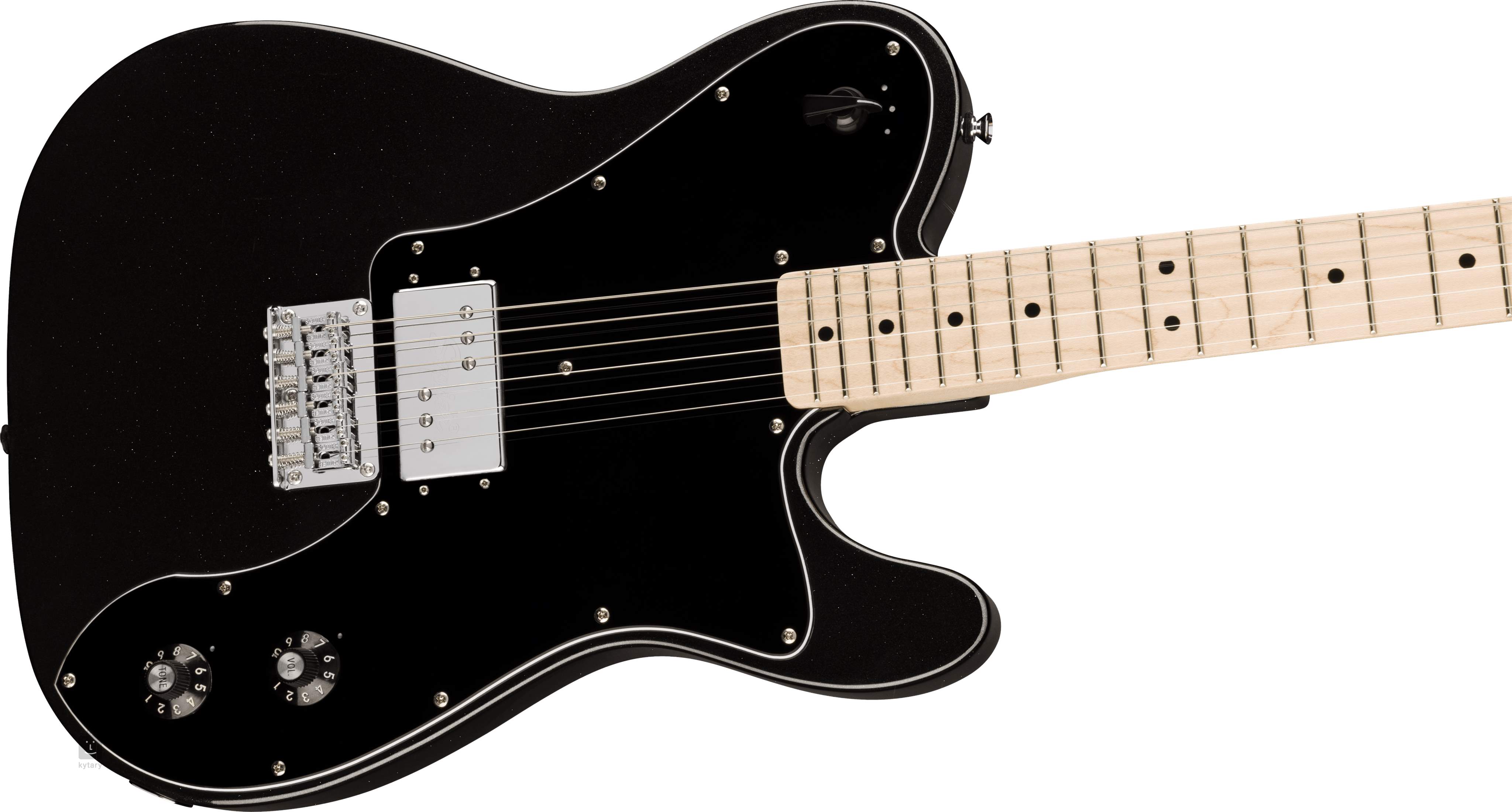 Pravú esenciu sedemdesiatych rokov reprezentuje humbucker Wide Range navrhnutý spoločnosťou Fender. Charakter zvuku je možné nastaviť pomocou potenciometrov hlasitosti a tónovej clony. Trojpolohový prepínač umožňuje v prvej polohe "obísť" obvod tónovej clony, zatiaľ čo tretia poloha ponúka konfiguráciu split-coil, t. j. aktívna je len vnútorná cievka humbuckera. Struny sú uchytené vo firemných mechanikách vo vintage štýle a prostredníctvom šesťramenného sedla cez telo. Štýlovú povrchovú úpravu podčiarkuje trojvrstvový čierny pickguard a logo Squier Esquire Deluxe na hlavici.