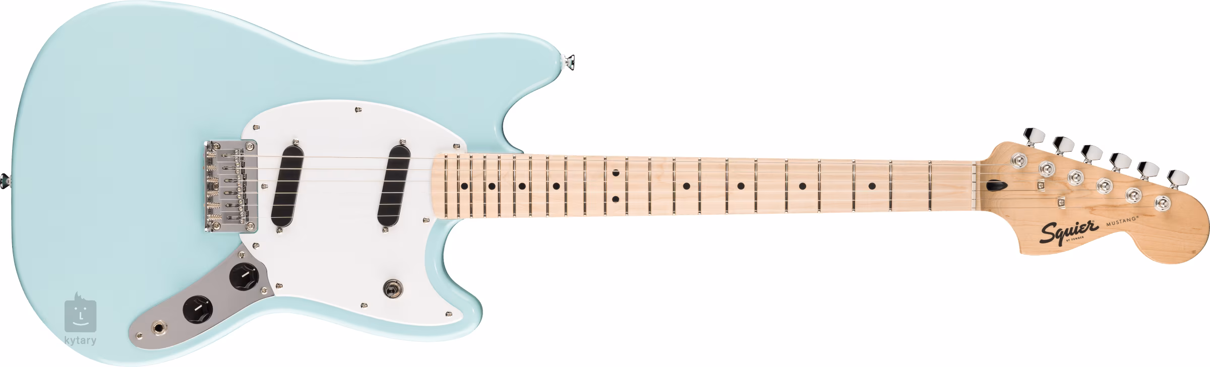 Fender Squier Sonic Mustang MN WPG DPB je cenově dostupná elektrická kytara bez zbytečných příkras vhodná pro začínající kytaristy a kytaristky.