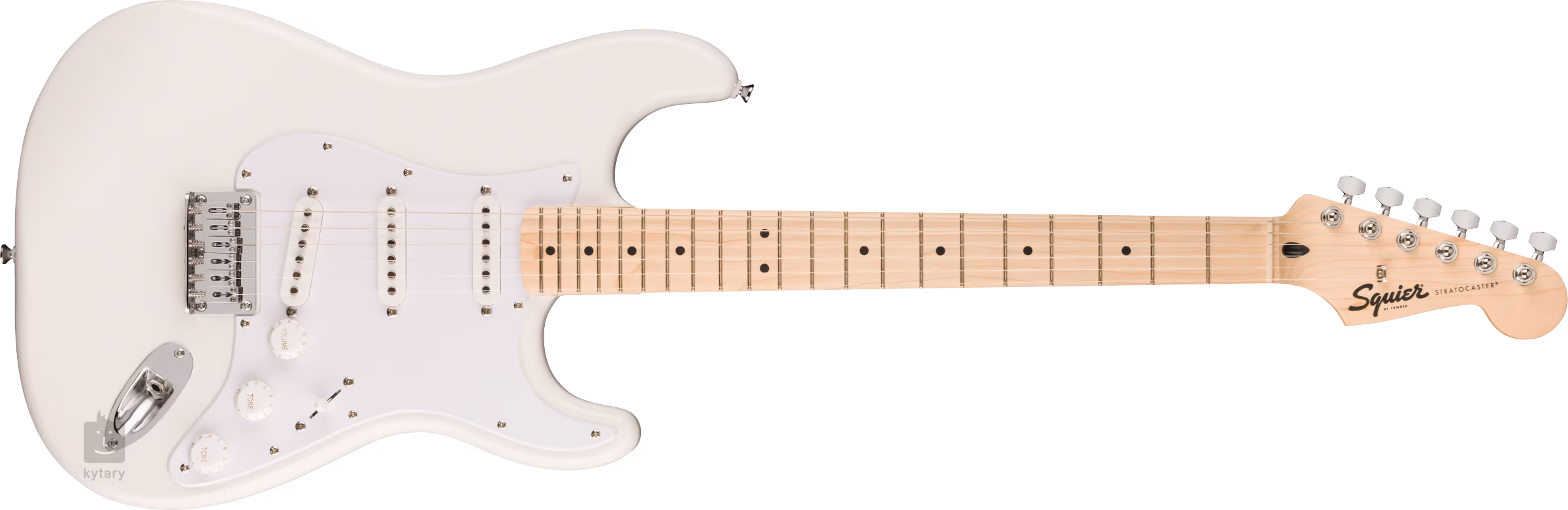 Fender Squier SONIC STRAT HT MN WPG AWT je cenovo dostupná elektrická gitara bez príkras vhodná pre začínajúcich gitaristov. Topolové telo nástroja je pokryté lesklým polyuretánovým lakom. Krk s profilom "C" a hmatník sú vyrobené z javora, plochu hmatníka rozdeľuje dvadsaťjeden pražcov Narrow Tall a čierne pozičné bodky.