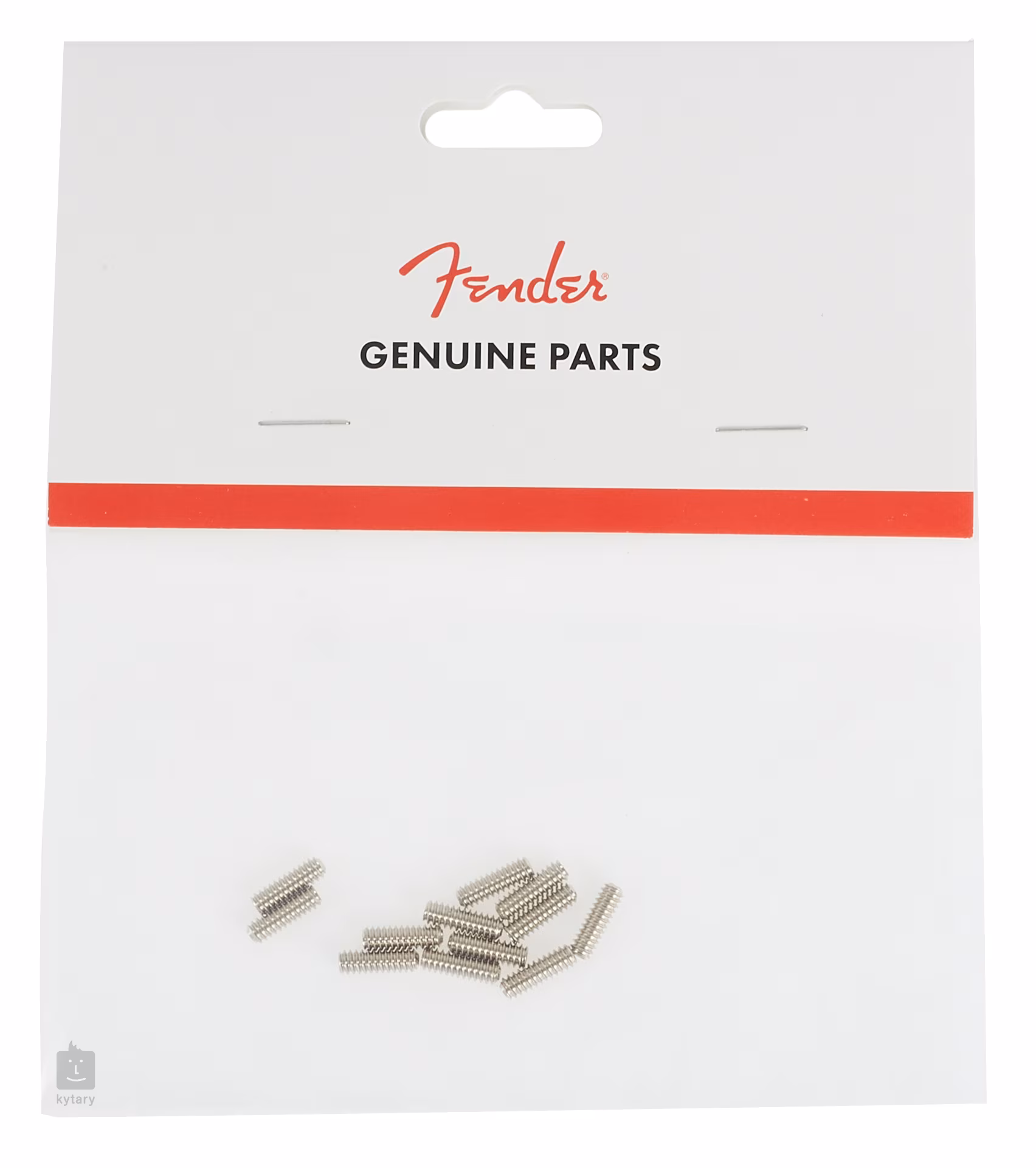 Sada dvanástich originálnych imbusových skrutiek Fender (6-32x7/16") používaných na nastavenie výšky strún basgitár Fender American Special a Standard.