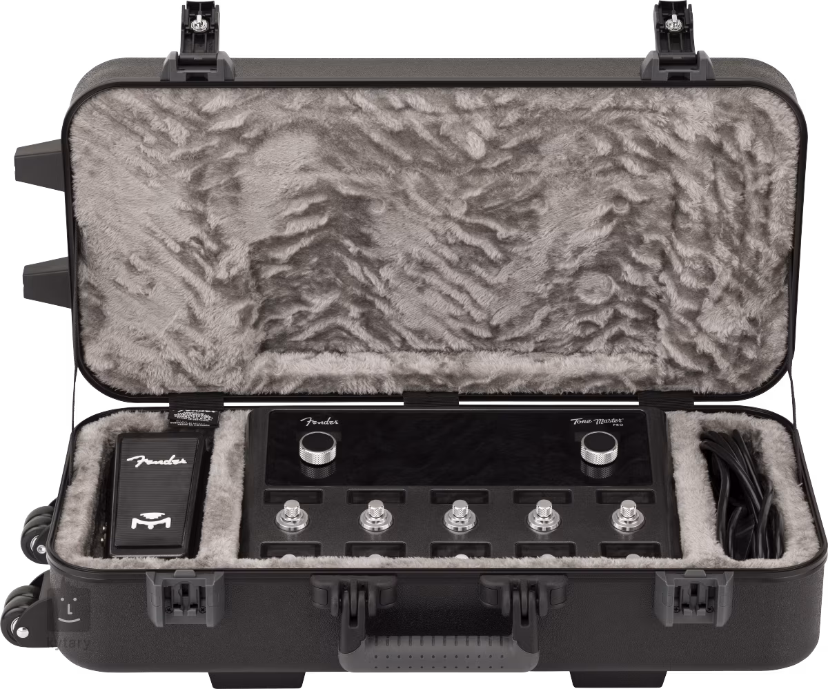 Prepravné puzdro z odolného materiálu ABS pre gitarové multiefekty Fender Tone Master Pro. Kufrík je vybavený polstrovanými vnútornými priehradkami na uloženie dvoch expression pedálov, vreckami na uloženie káblov a iného drobného príslušenstva a teleskopickou rukoväťou a kolieskami na jednoduchú prepravu.