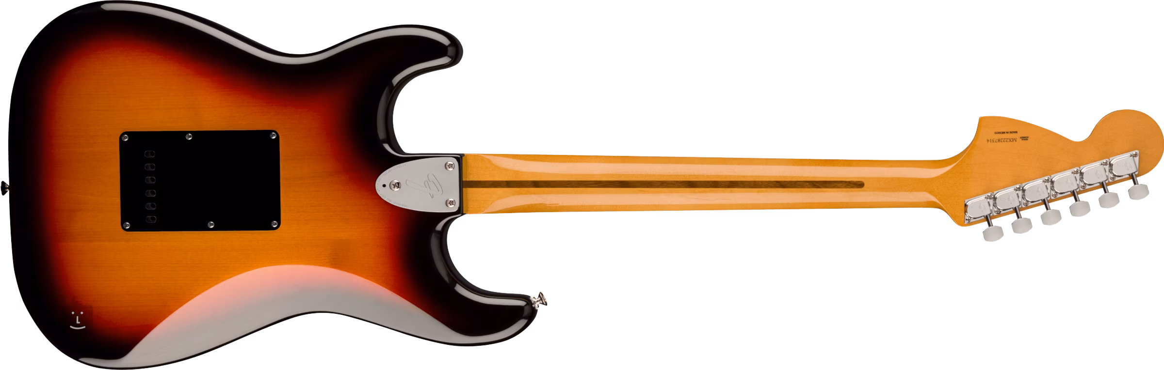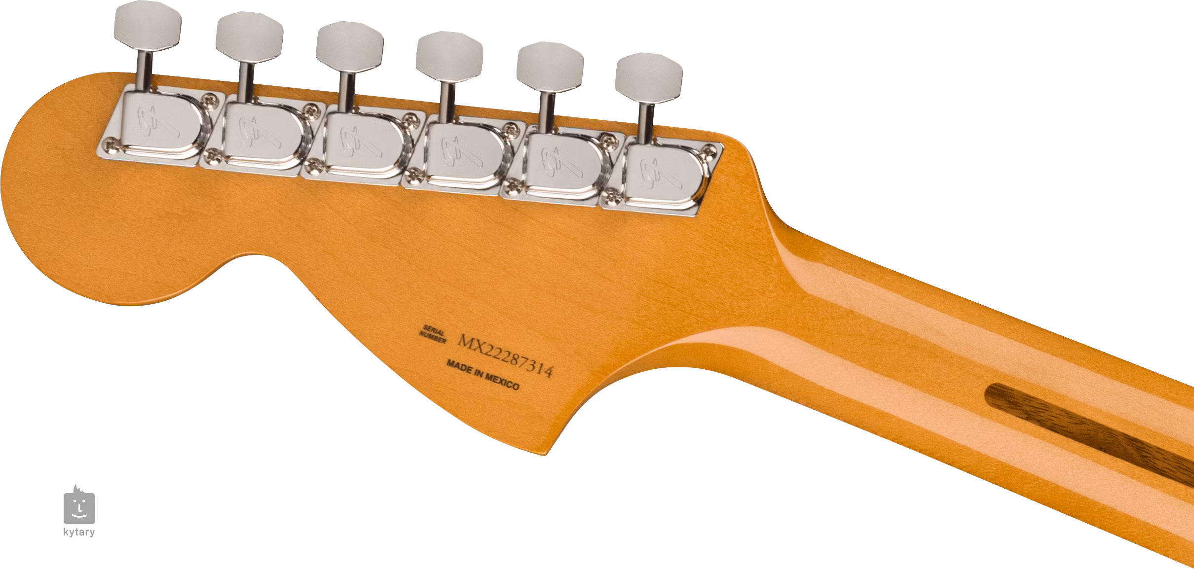 Trojica snímačov v štýle vintage zo 70. rokov dodáva gitare teplý, živý tón s jasne priznanou DNA značky Fender. Charakter zvuku upravíte pomocou štandardných ovládačov hlasitosti a tónovej clony a päťpolohového prepínača snímačov. Struny sú osadené pražcami zo syntetickej kosti v značkových firemných ladiacich mechanikách Fender Vintage "F" Stamped a synchronizovaným tremolom so šesťbodovou kotvou. Štýl podčiarkuje trojvrstvový pickguard a logo Fender na hlavici.