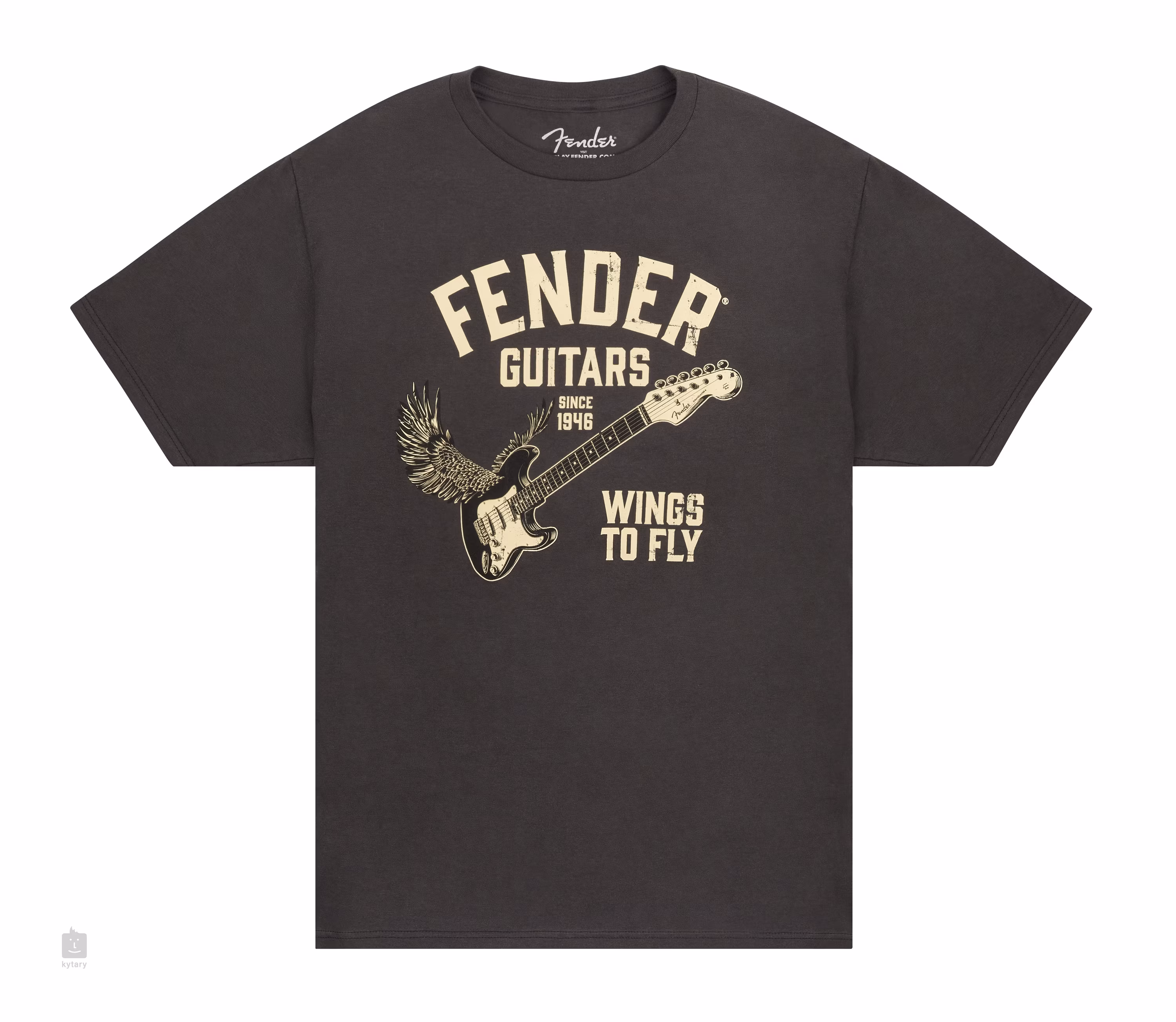 Grafický dizajn trička Fender Wings To Fly T-Shirt Vintage Black vychádza z citátu Lea Fendera, ktorý povedal, že "všetci umelci sú anjeli a našou úlohou je dať im krídla". Tričko je vyrobené zo 100 % bavlny a je dostupné v rôznych veľkostiach.