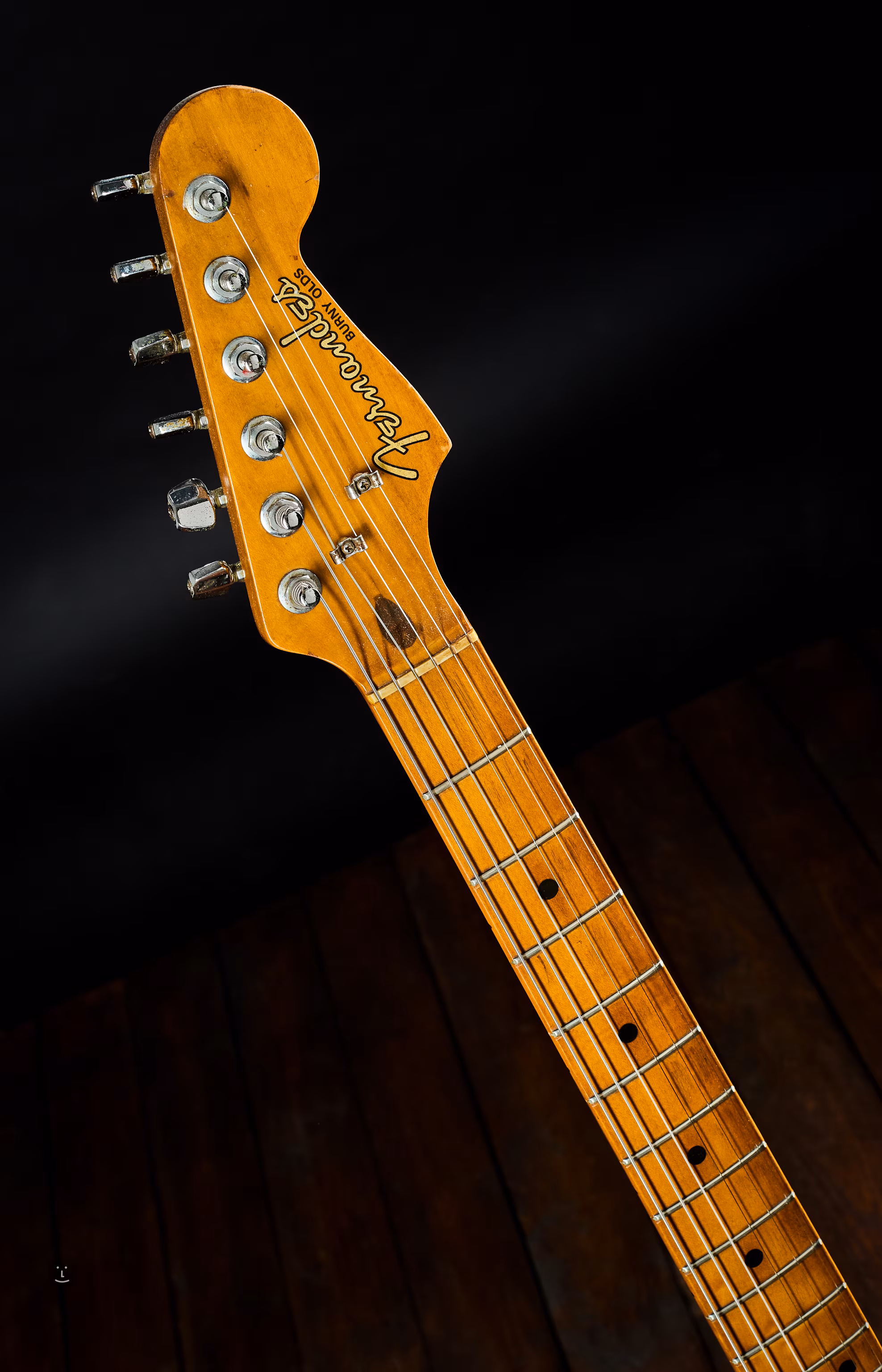 50-ročná japonská replika modelu Stratocaster z roku 1976, ešte so starším logom „spaghetti“.