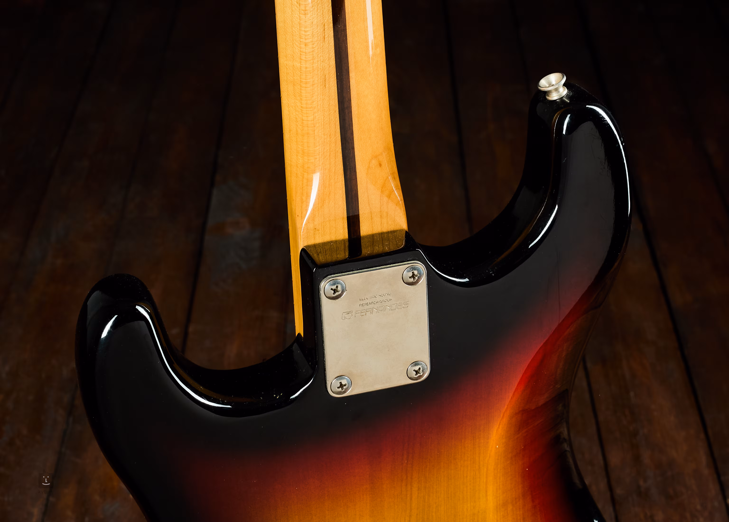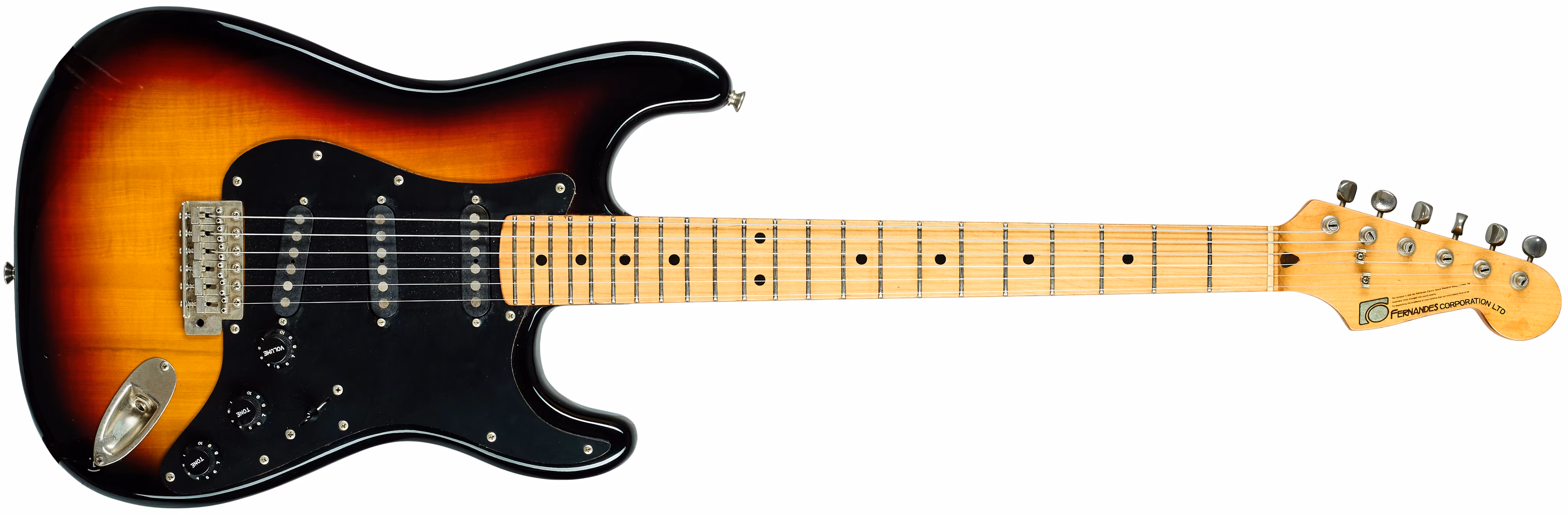 Vyšší model stratocasteru od japonského výrobce Fernandes s vyhedávaným "stone" logem. Lawsuit éra na přelomu 70. a 80. let.