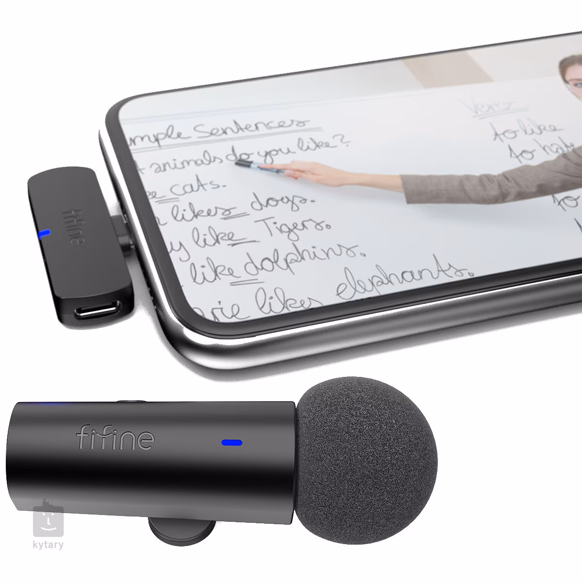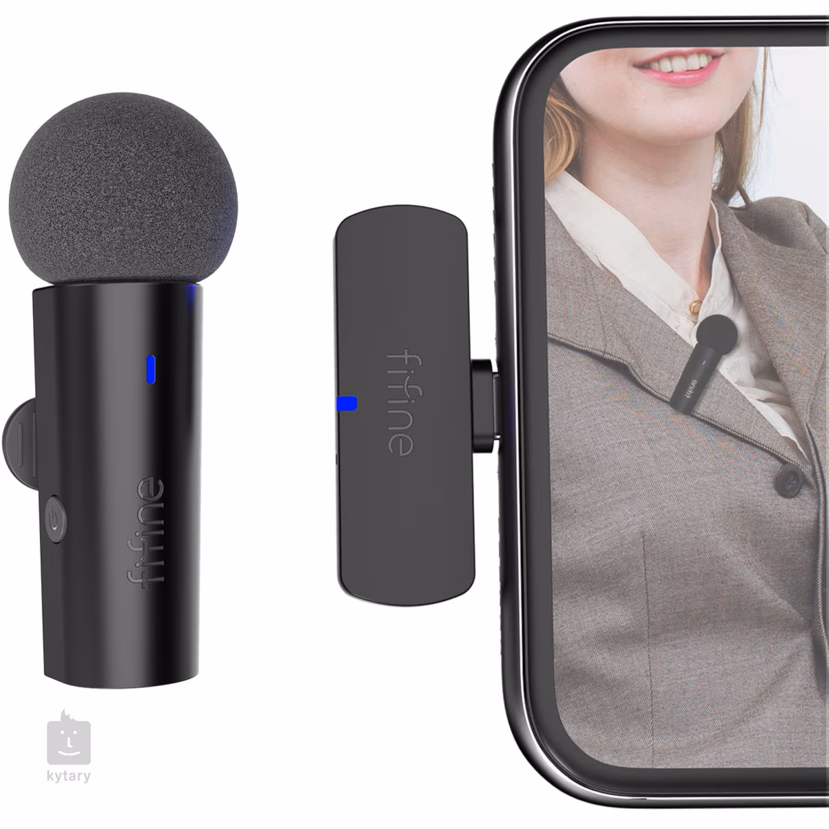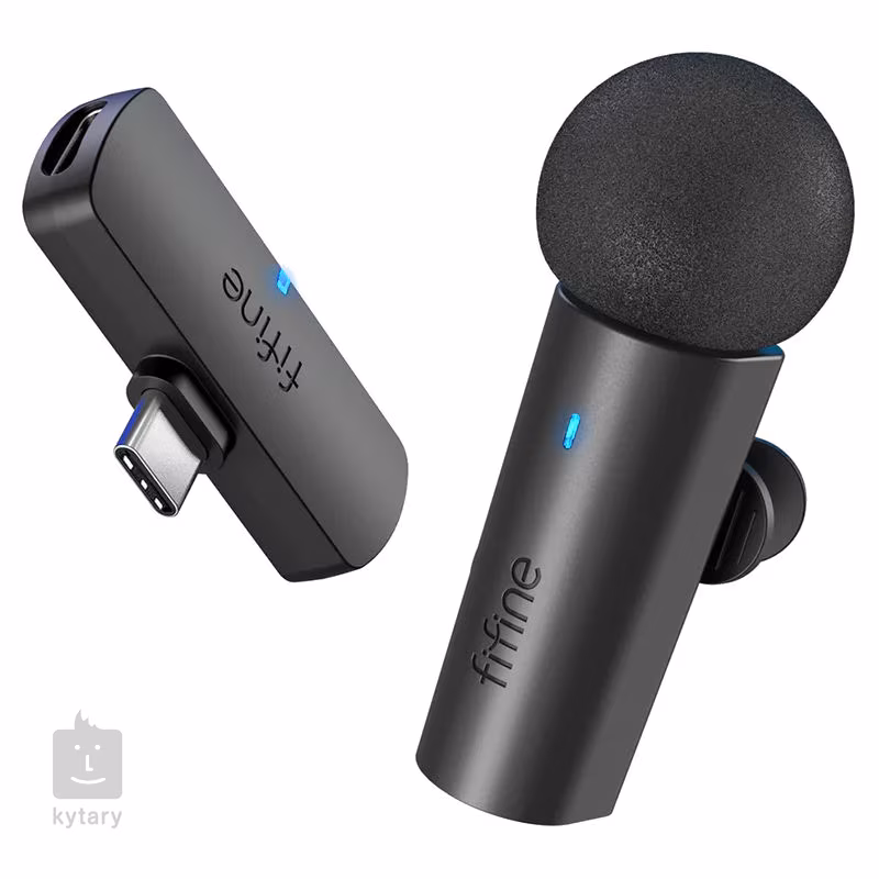 Bezdrôtová súprava Fifine M6 s klopovým mikrofónom a prijímačom s portom USB-C na pripojenie k telefónu, notebooku a iným zariadeniam. Fifine M6 ponúka vysokokvalitný záznam zvuku, klopový mikrofón so sférickou (všesmerovou) charakteristikou, dosah až 20 metrov na prácu aj v náročnom teréne, 150 mA batériu a nabíjanie cez USB. Súprava obsahuje mikrofónový systém, ochranu proti vetru, káble a puzdro na prenášanie.