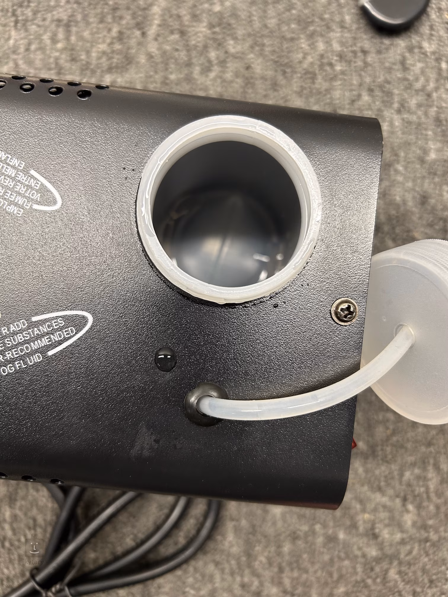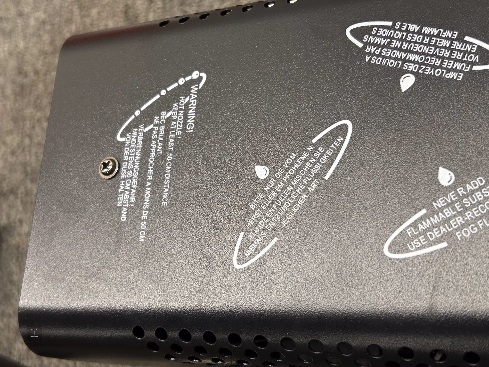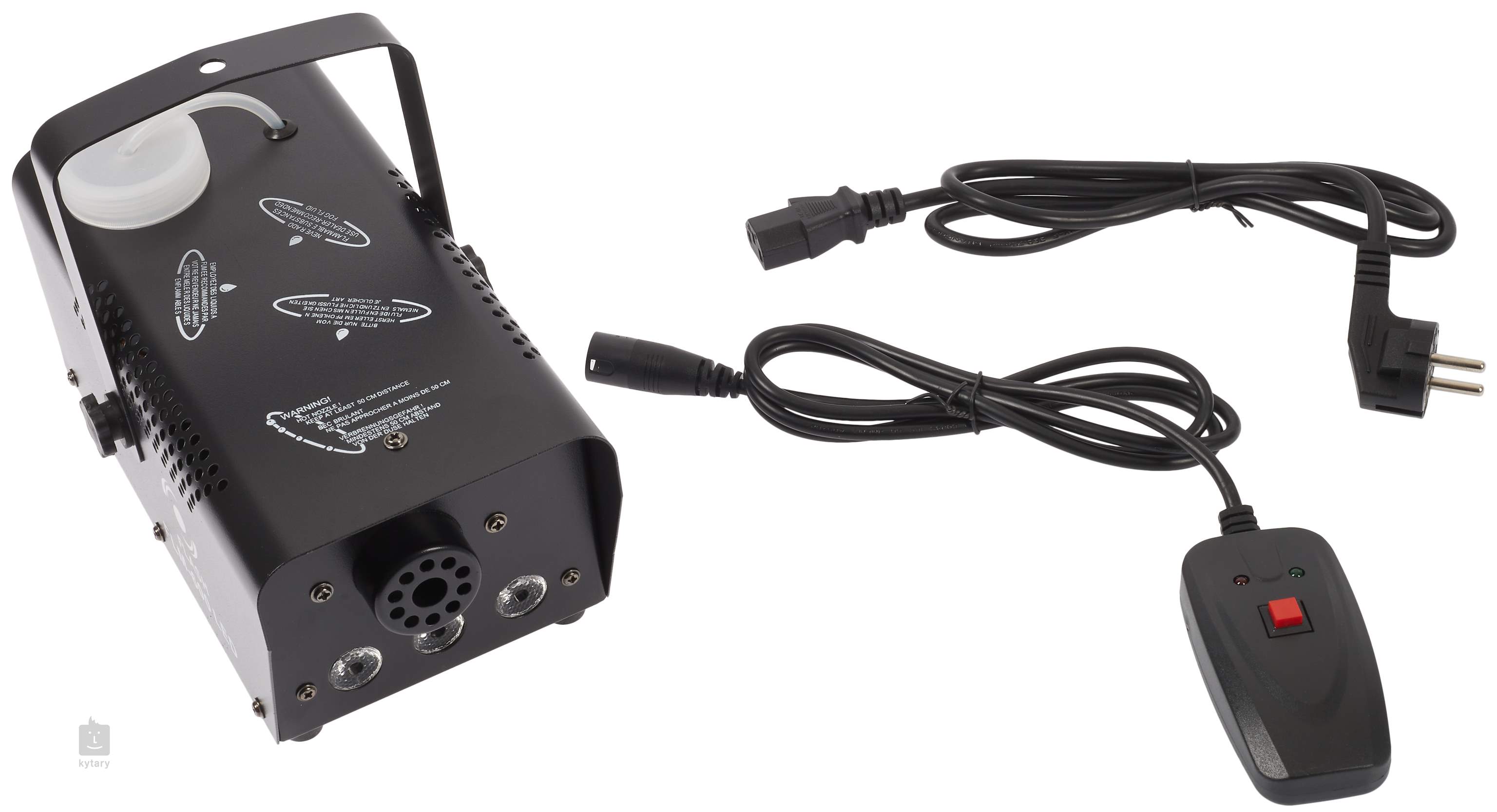Prvotné zahriatie svietidla na prevádzkovú teplotu trvá približne 8 minút. Jeho 1200W vykurovacie teleso umožňuje vyprodukovať 56 m3 hmly za minútu, takže rýchlo zaplní aj malú miestnosť. Kapacita zásobníka na kvapalinu je 300 ml. Tento model je vybavený tromi modrými LED diódami, ktoré pri výrobe hmly svietia a zvýrazňujú jej dymový efekt. Súčasťou balenia je diaľkové ovládanie.