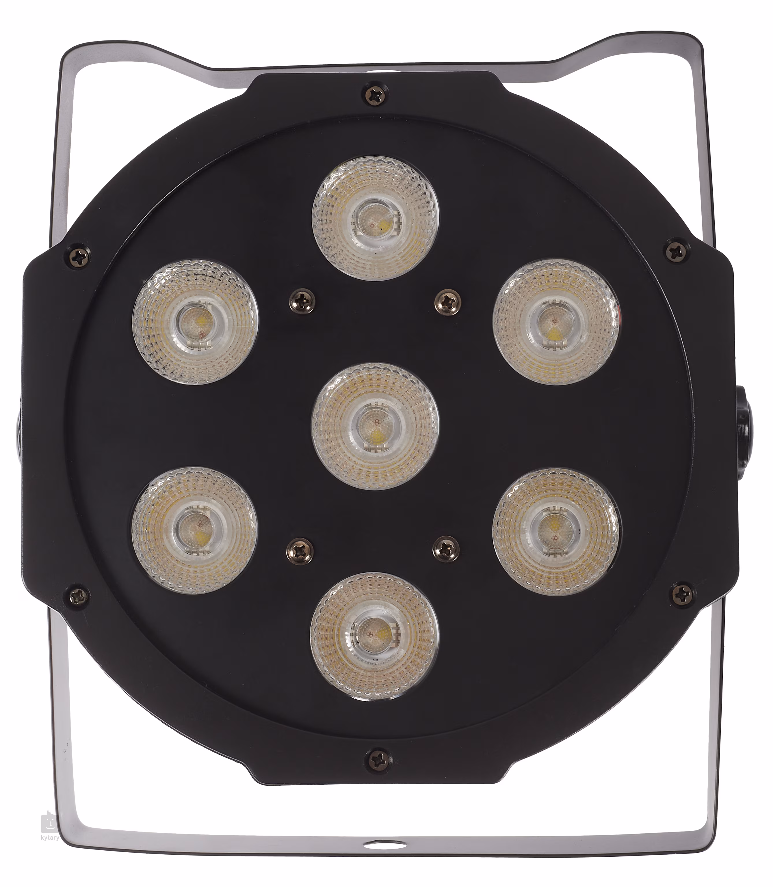 LED PAR56 7x10W RGBW + IR od spoločnosti Flash je kompaktný a ľahký, ale prekvapivo výkonný LED PAR reflektor, ktorý sa výborne hodí najmä ako mobilné zariadenie na osvetlenie na cestách a pre hudobníkov. Umožní vám spoľahlivo osvetliť malé hudobné podujatie, svadbu alebo firemnú akciu. Jeho zdrojom svetla je sedem 10W RGBW (4v1) LED diód (červená, zelená, modrá a biela), ktoré vám poskytujú bohaté možnosti miešania farieb a vytvárania svetelných efektov. K dispozícii je aj stroboskopický efekt s nastaviteľnou rýchlosťou blikania a stmievač svetla.