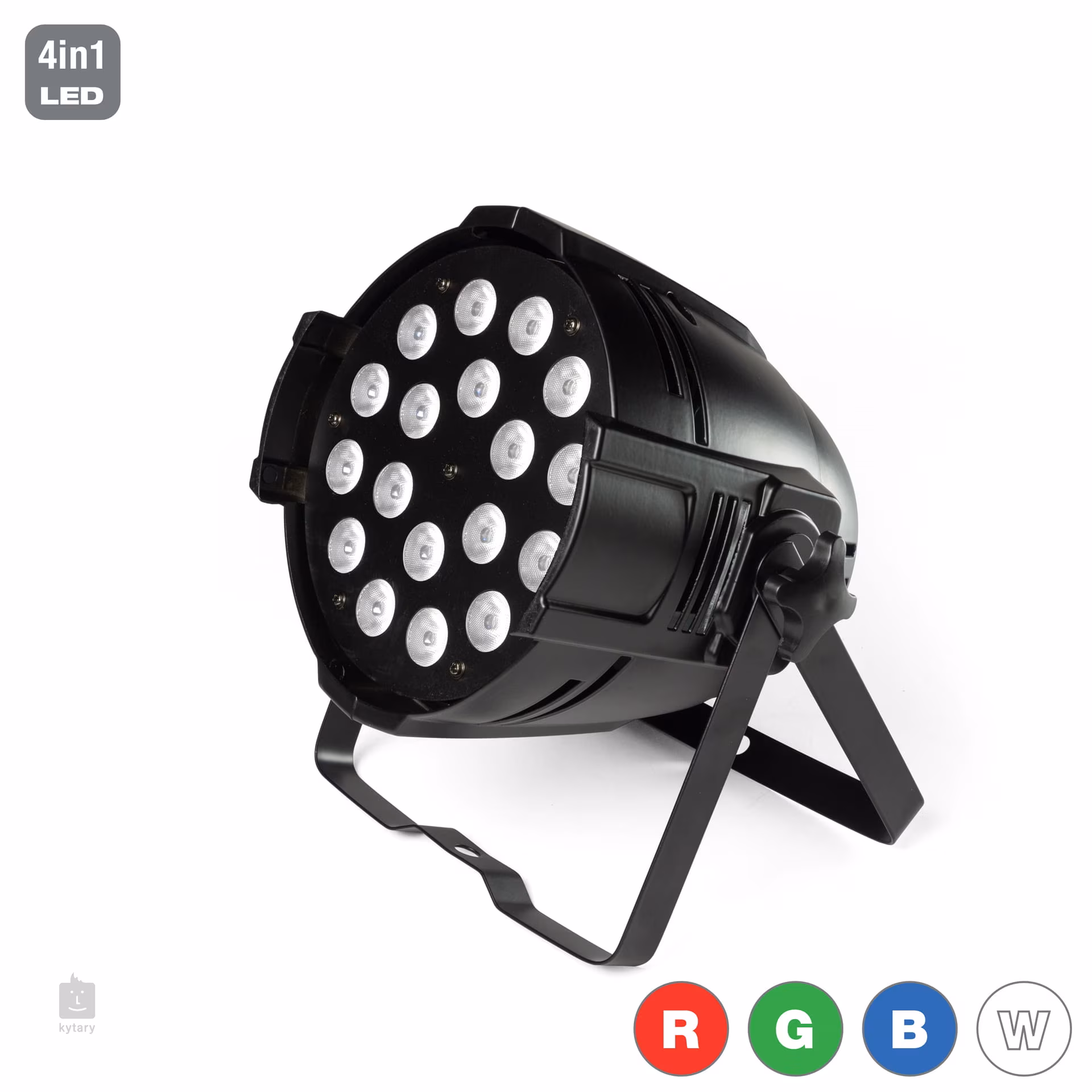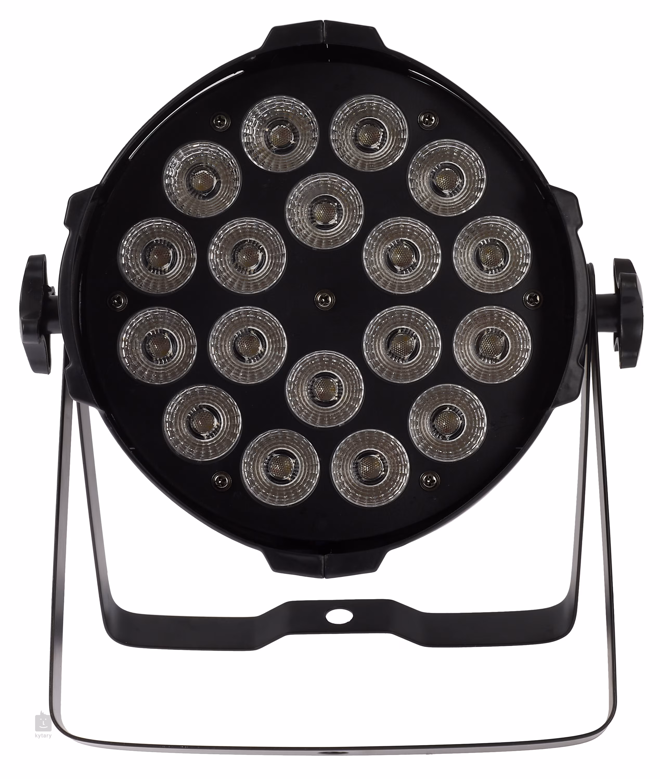 Tento reflektor LED PAR od spoločnosti Flash je ideálny na osvetlenie menších koncertov, tanečných vystúpení a iných podobných podujatí. Vďaka jeho kompaktným rozmerom a nízkej hmotnosti (220 x 270 x 300 mm, 2,2 kg) ho ocenia aj cestujúci osvetľovači a dídžeji, ktorí hľadajú svietidlo na mobilnú zábavu. Jeho svetelným zdrojom je osemnásť 10W RGBW (4v1) LED diód, ktoré poskytujú širokú škálu farieb na vytvorenie rôznych odtieňov. K dispozícii je aj stmievač svetla a stroboskopický efekt s nastaviteľnou frekvenciou blikania.