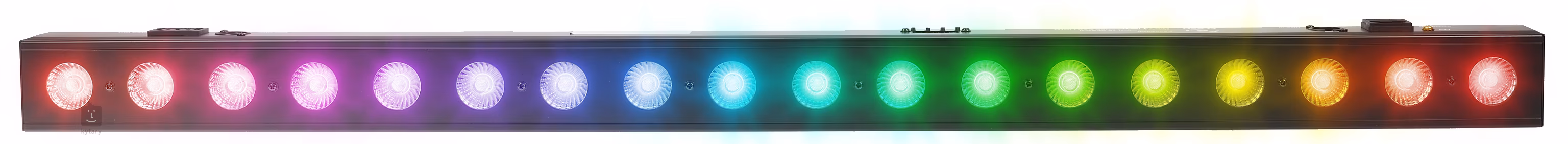 Táto LED lišta od spoločnosti Flash je vybavená osemnástimi 4W RGBW (4v1) LED diódami, ktoré možno ovládať v osemnástich nezávislých sekciách, čo znamená, že každý pixel môžete nastaviť samostatne. Paleta farieb RGBW (červená, zelená, modrá, biela) vám poskytuje bohaté možnosti miešania na vytvorenie rôznych farieb. K dispozícii budete mať aj funkciu stmievania a stroboskopický efekt s nastaviteľnou rýchlosťou blikania.