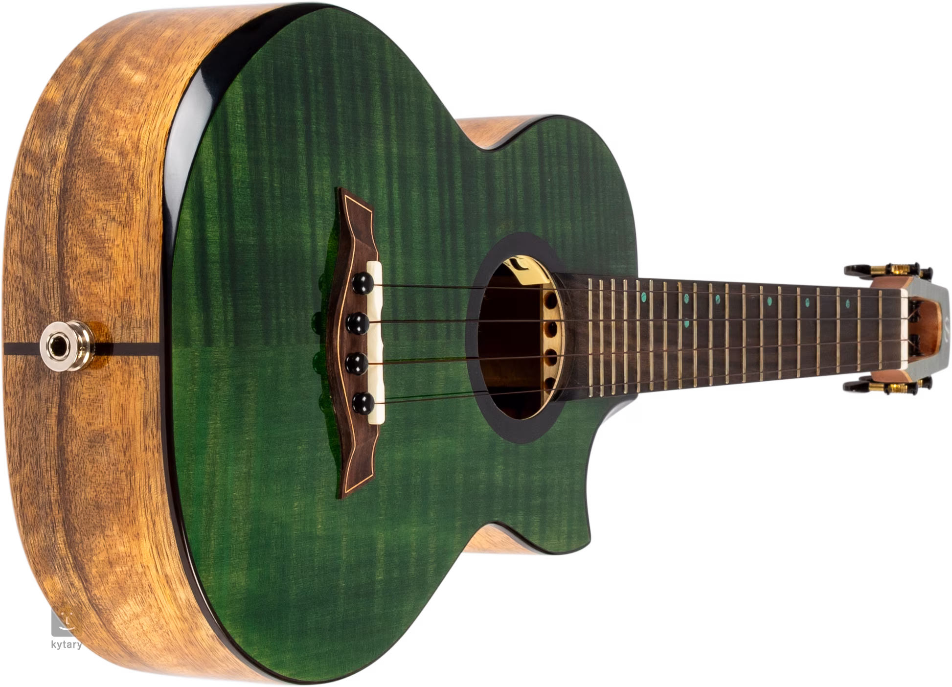 Comet Tenor Ukulele EQ-A Green ponúka kombináciu vizuálne výrazných drevín - masívnu figurovanú javorovú rezonančnú dosku a zadnú dosku a luby z masívneho mangového dreva. Teplý, bohatý zvuk mangového dreva sa často prirovnáva k havajskému koa. V prípade materiálov krku a hmatníka padla voľba na osvedčené dreviny, africký mahagón a palisander, ktoré sa používajú v prémiových nástrojoch. Dobrému ladeniu vo vyšších polohách hmatníka napomáha elegantný spodný výrez tela.