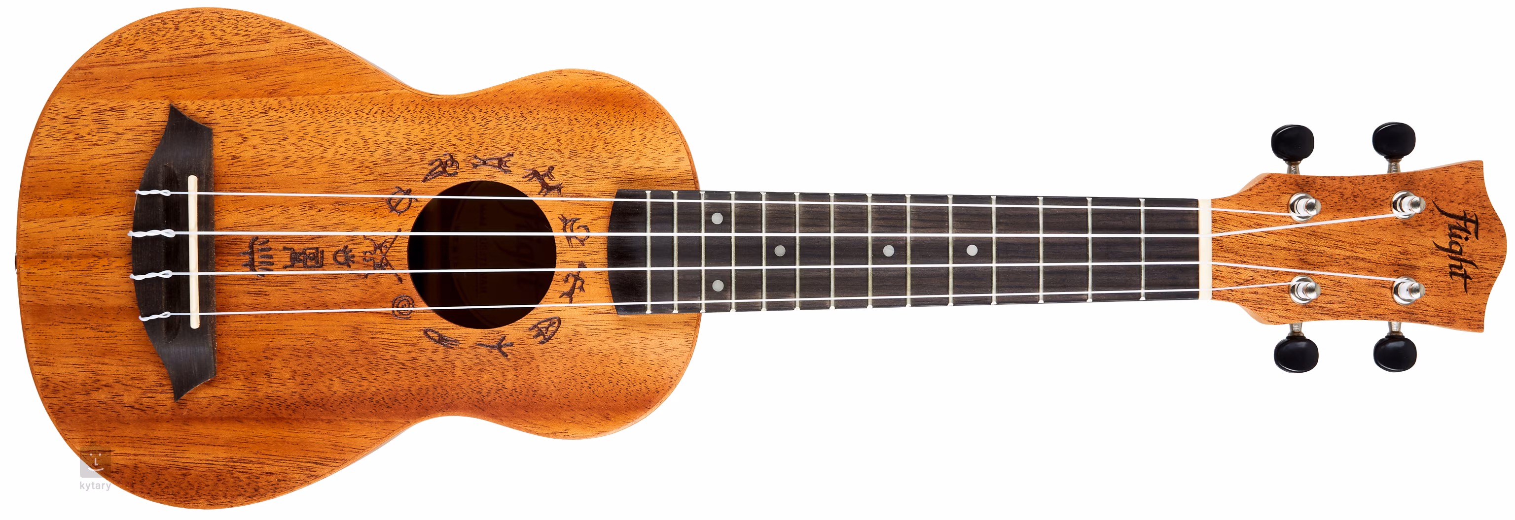 Telo tohto sopránového ukulele je celé vyrobené z laminovaného afrického mahagónu, pričom vrchnú dosku zdobia rytiny v dizajne havajských petroglyfov, t. j. skalných malieb. Krk a hmatník nástroja sú vyrobené z afrického okoumé a orechového dreva, čo je tiež pomerne často používaná kombinácia drevín. Struny sú ukotvené prostredníctvom plastového nultého a sedlového pražca v ladiacich mechanikách Geared a hmatníku z orechového dreva.