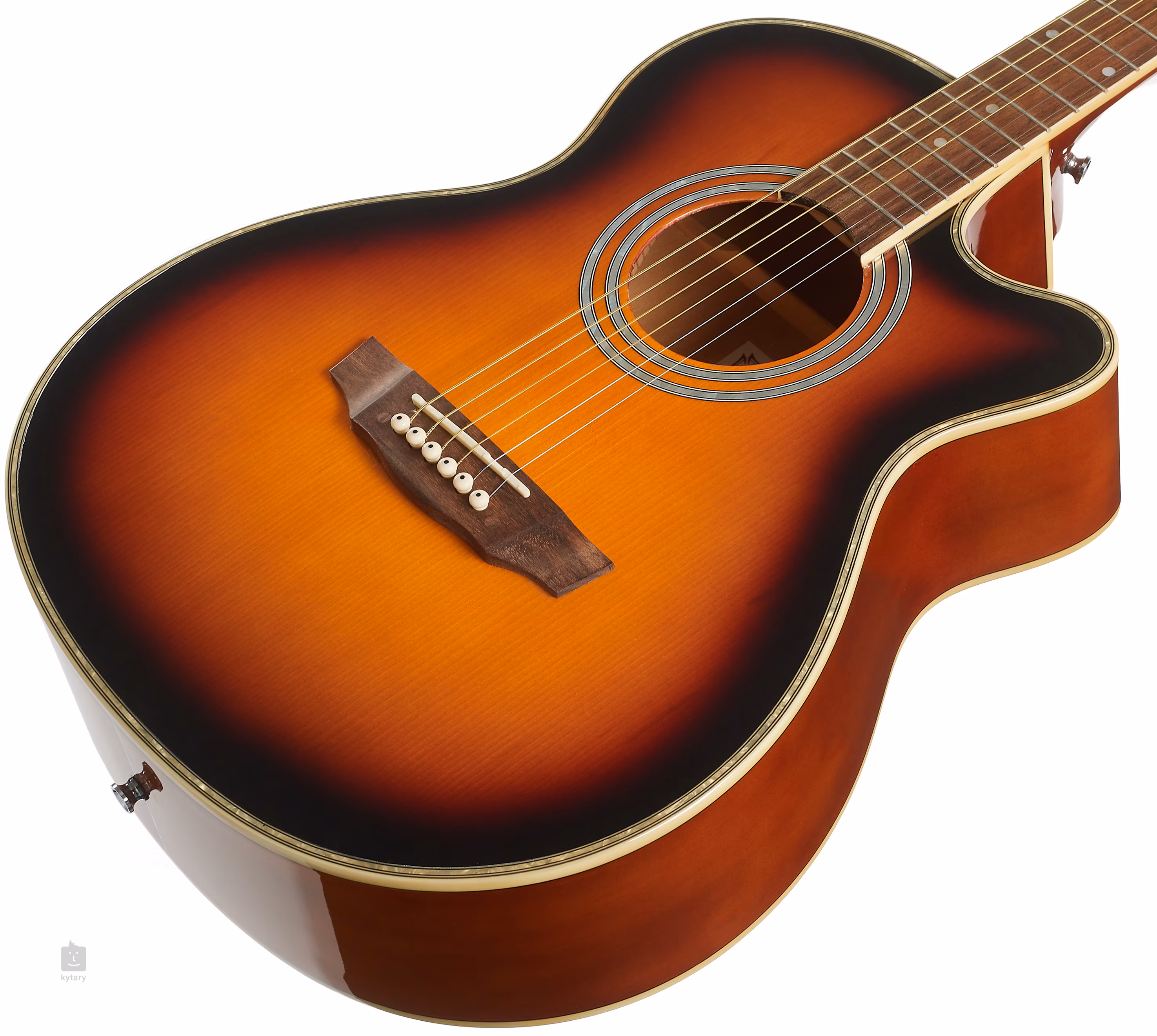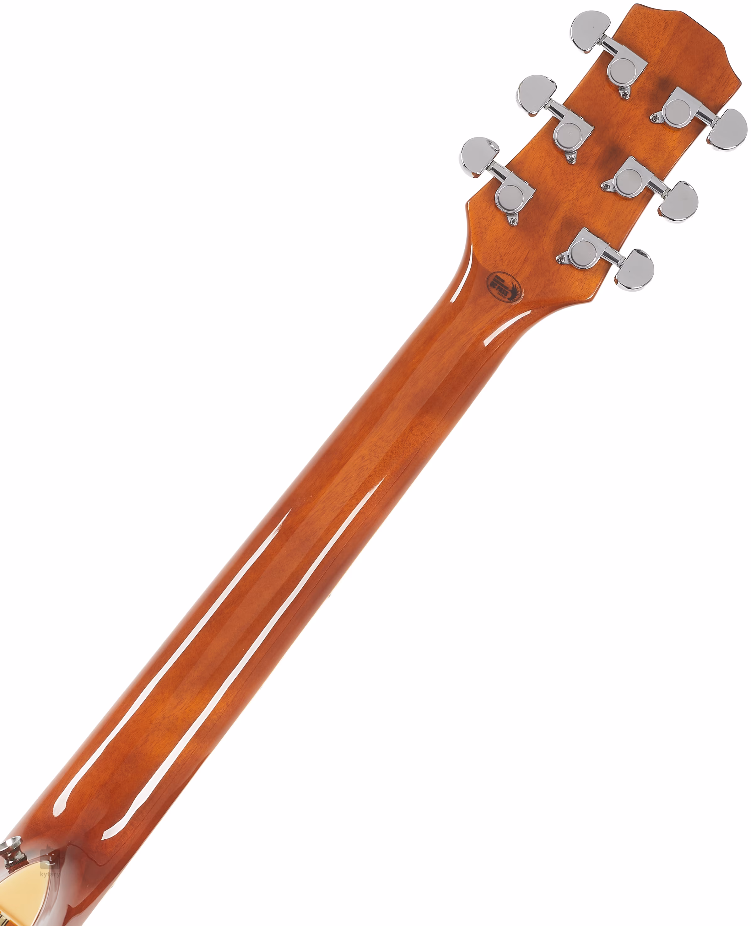 Struny sú uchytené vo firemných chrómových die-cast mechanikách. Štýlové spracovanie podčiarkujú tradičné prvky v podobe obojstrannej obvodovej väzby tela a rozety.