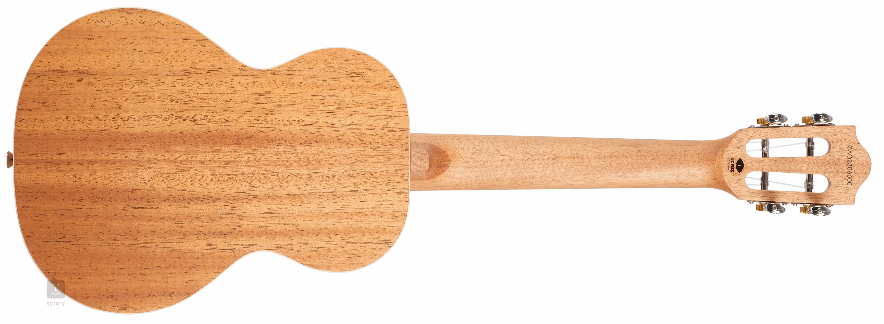 Telo tenorového ukulele IRIS TENOR BK je vyrobené z masívneho smrekového dreva na prednej strane a laminovanej mahagónovej zadnej strane a luboch. Kombinácia smreka a mahagónu dodáva nástroju vyváženú rovnováhu zvukovej čistoty a hrejivosti. K okoumé krku je prilepený palisandrový hmatník s devätnástimi pražcami. Struny drží v mechanike Der Jung a palisandrovom hmatníku prostredníctvom sedla a kosteného pražca. Štýlové spracovanie podčiarkuje efektný pickguard, slonovinové obvodové lemovanie a rozeta s imitáciou perlete.