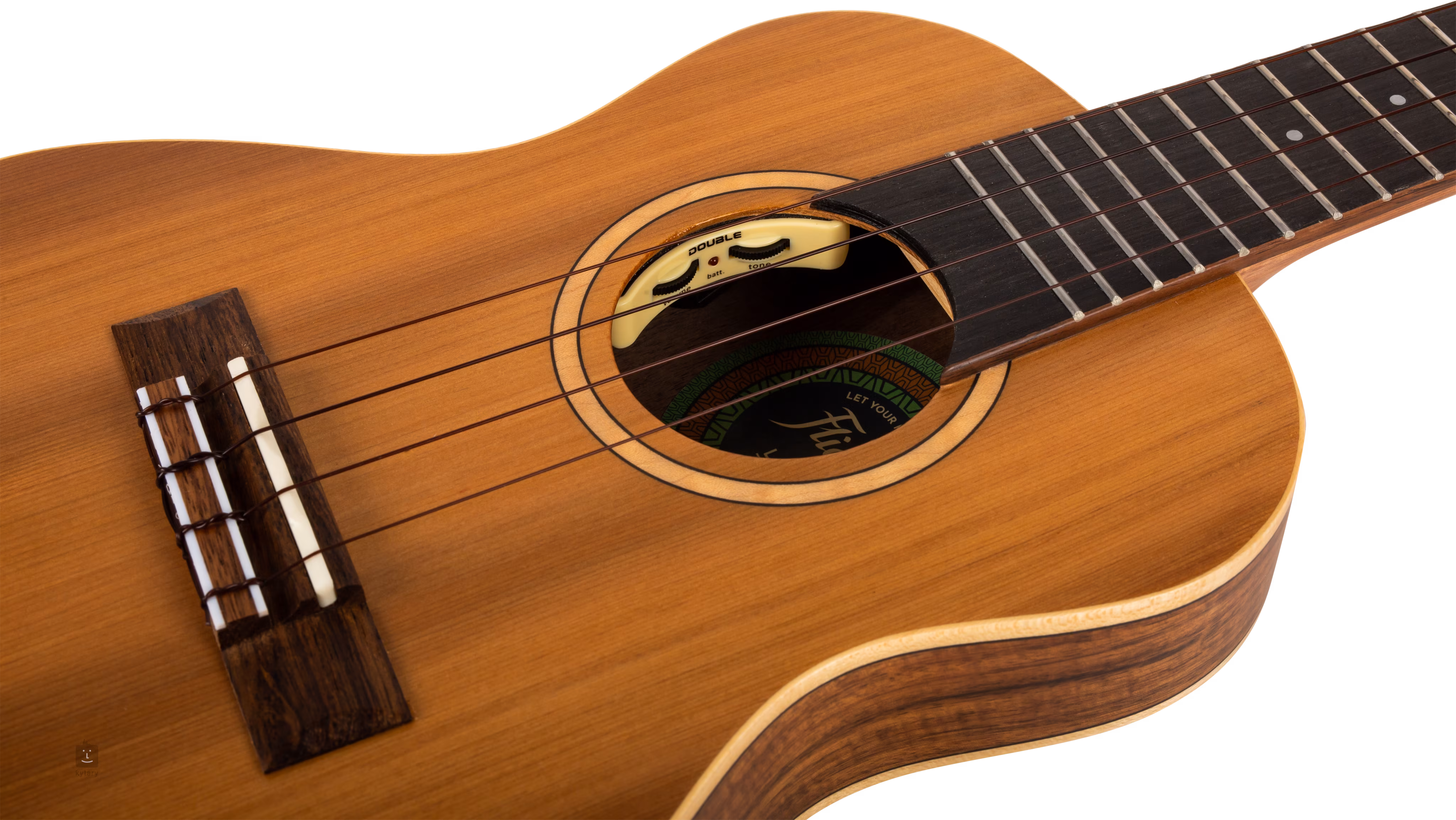 O ozvučenie sa stará aktívna elektronika Double B1U s ovládačmi Volume a Tone decentne vsadenými do ozvučného otvoru nástroja.