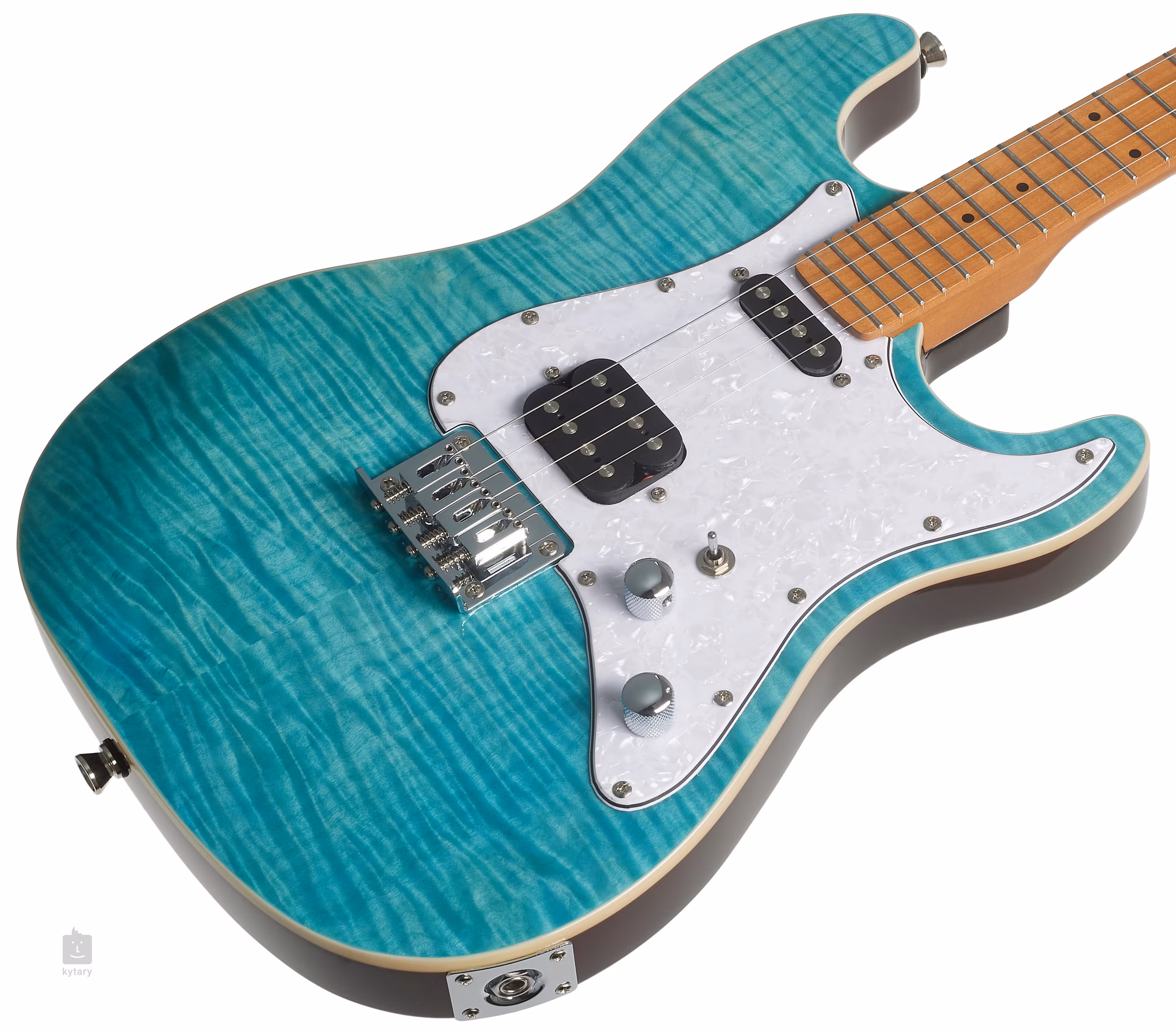 Humbucker na kobylke a single-coil na pozícii pri krku dodávajú punc autenticity. A aby bol pocit z hry na zmenšenú štvorstrunovú elektrickú gitaru kompletný, k dispozícii sú potenciometre hlasitosti, tónovej clony a trojpolohový prepínač na prepínanie medzi snímačmi. Struny sú ukotvené v štýlových pochrómovaných gitarových mechanikách a cez pevný mostík cez telo gitary. Pekné spracovanie podčiarkuje ABS obal tela a pickguard v perleťovo bielej farbe.