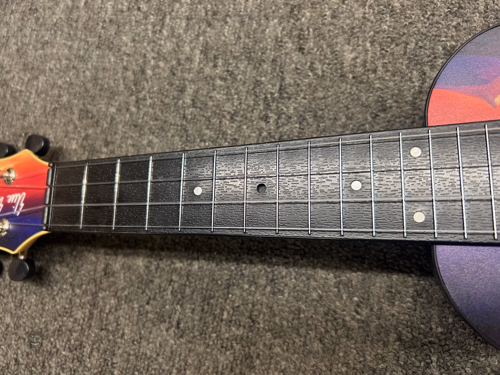Ukulele sa dodáva v modrom denimovom puzdre s inštruktážnou brožúrou.