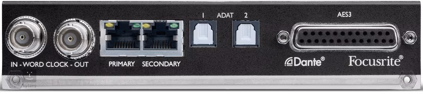 2 x RJ45 Dante, AES3, 2 x ADAT Toslink, Word Clock coaxial BNC