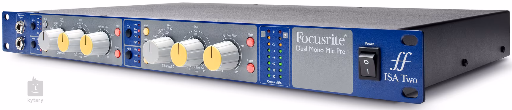 Focusrite ISA Two je všestranný a vysoko flexibilný dvojkanálový mikrofónový predzosilňovač v prevedení 1U rackovej jednotky vybavený vstupnými transformátormi Lundahl a nezávislými linkovými a nástrojovými vstupmi. Topológia predzosilňovača vychádza z obvodov pôvodného ISA110 navrhnutého Rupertom Neveom, ktorý sa už niekoľko desaťročí používa v najúspešnejších produktoch Focusrite.