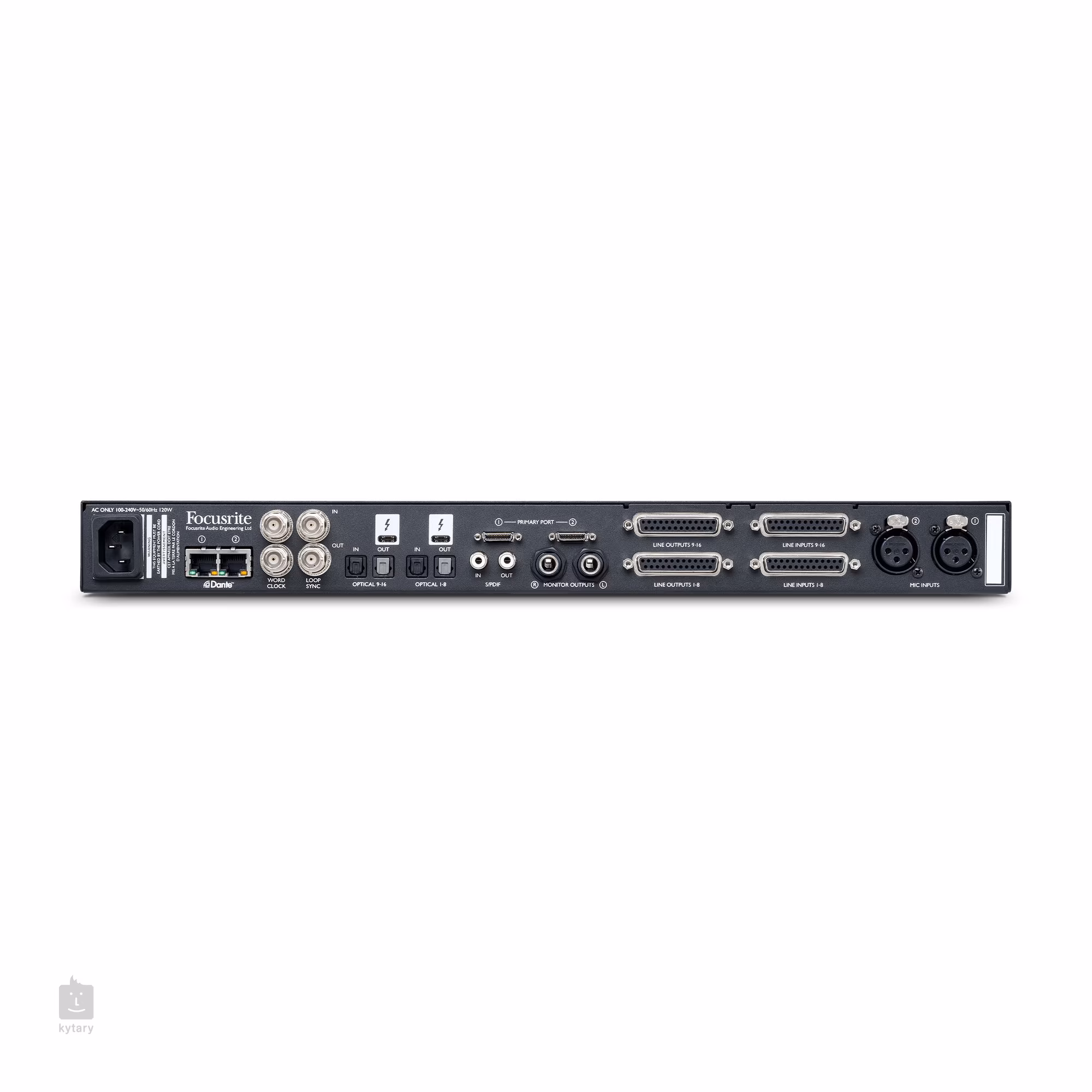 Focusrite Red 16line je moderné, vysoko kvalitné audio rozhranie vo formáte 1U rack s pripojením Thunderbolt 3, ktoré ponúka celkom 64 vstupných a 64 výstupných kanálov, 2 mikrofónne predzosilňovače Red Evolution, nezávislé monitorovanie výstupov, 16 symetrických linkových vstupov a 16 výstupov na termináloch Sub-D 25; 32 kanálov Dante I/O; 16 kanálov ADAT I/O (pri 48 kHz) a stereo S/PDIF vstup a výstup. K dispozícii je tiež komplexné rozhranie Word Clock s koaxiálnymi konektormi BNC. Podobne ako ostatné rozhrania Red, disponuje profesionálnou 24-bitovou/192 kHz A/D a D/A konverziou pre bezkompromisný záznam a prehrávanie zvuku v master kvalite. Prevodníky s dynamickým rozsahom 119 dB A/D a 121 dB D/A boli odborným spôsobom vybrané a kalibrované spoločnosťou Focusrite, aby poskytovali najlepšiu rovnováhu medzi kvalitou zvuku, dynamickým rozsahom a latenciou prevodu.