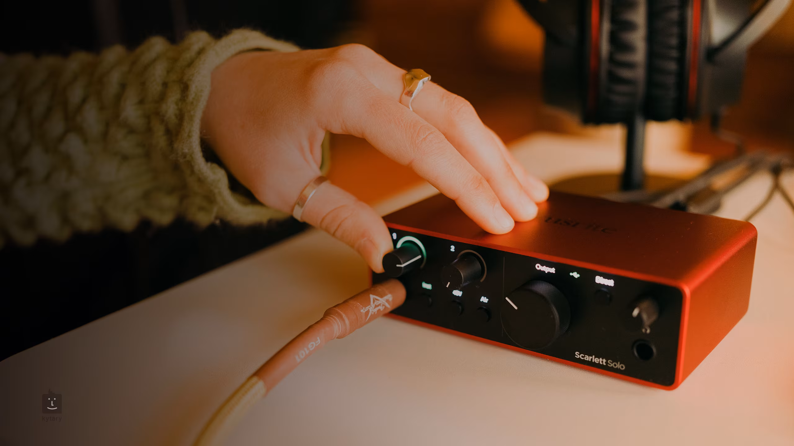 Focusrite Scarlett Solo 4. generácie je dvojkanálové USB-C audio rozhranie, ktoré ponúka jeden mikrofónový predzosilňovač a jeden vstup pre linkové alebo nástrojové signály, jeden stereo výstup na pripojenie monitorovacích reproduktorov a jeden výstup na slúchadlá.